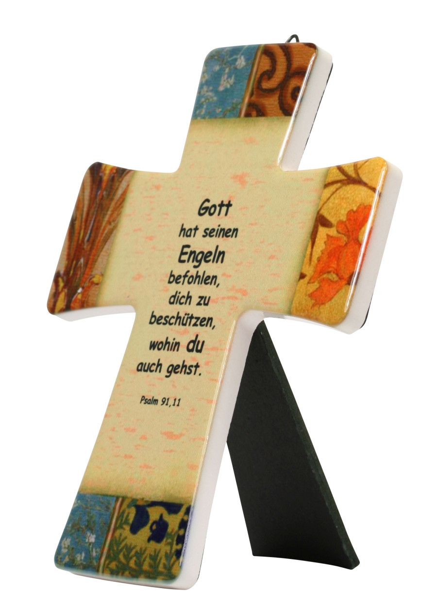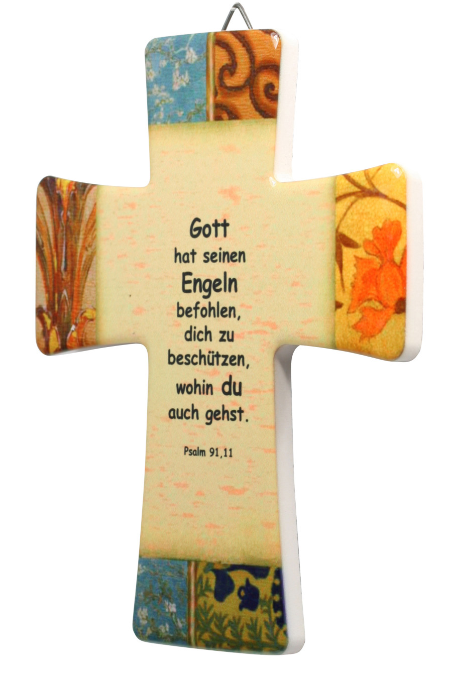 Produktinformationen "Keramik Kreuz - Gott hat seinen Engeln befohlen & Farbig"