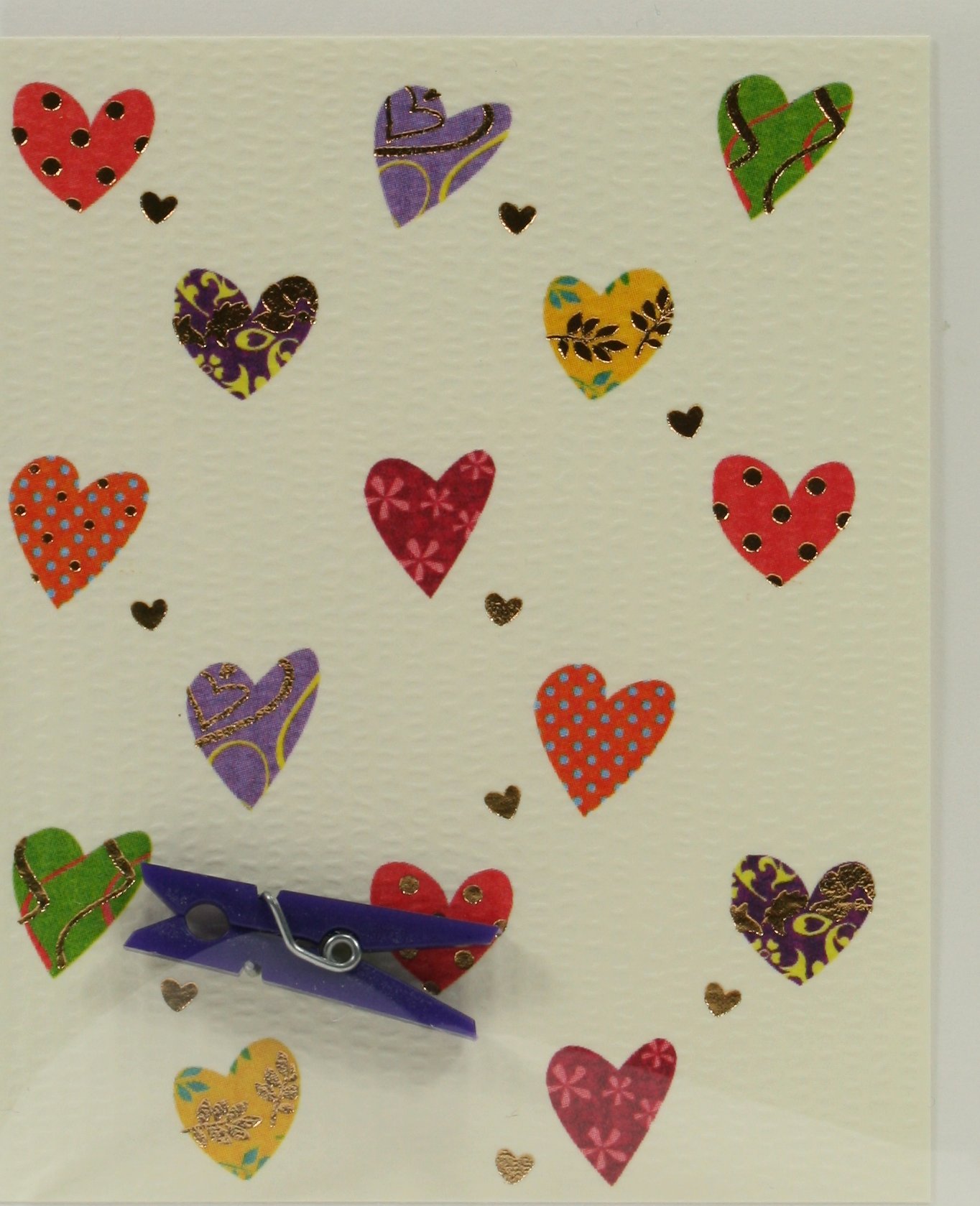 - Doppelkarte mit hellem Umschlag und kleiner Wäscheklammer