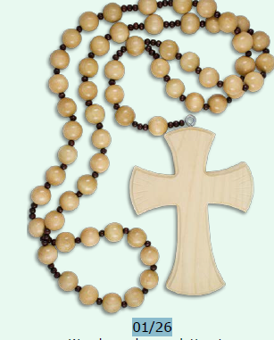 Wandrosenkranz - Helle Holzperle & Kreuz
