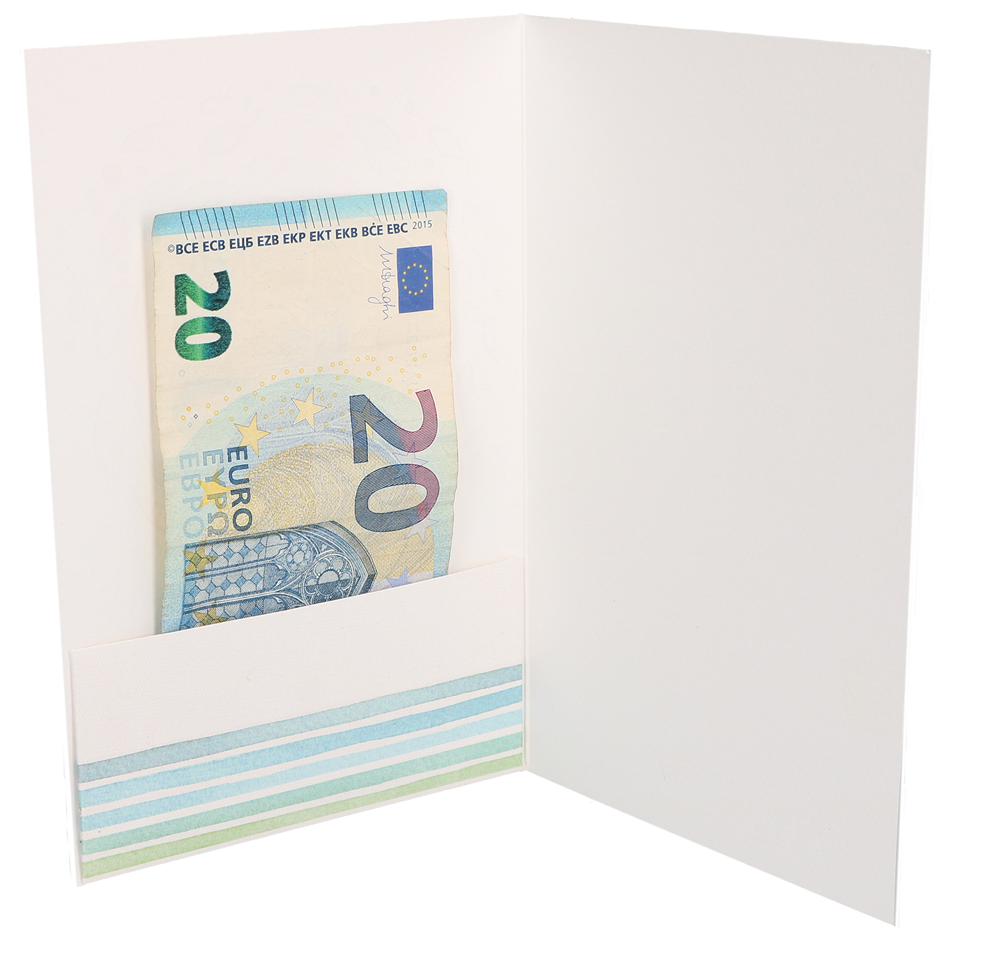 - Innenliegend ist eine Lasche angebracht, damit ein Geldgeschenk eingesteckt werden kann.