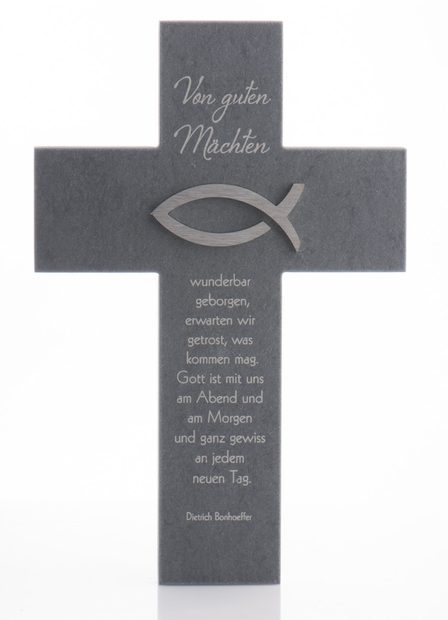 Produktinformationen "Schieferkreuz - Von guten Mächten & Edelstahl-Fisch"