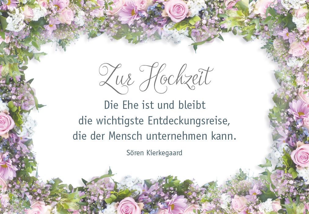 - Zur Hochzeit. Die Ehe ist und bleibt die wichtigste Entdeckungsreise, die der Mensch unternehmen kann.