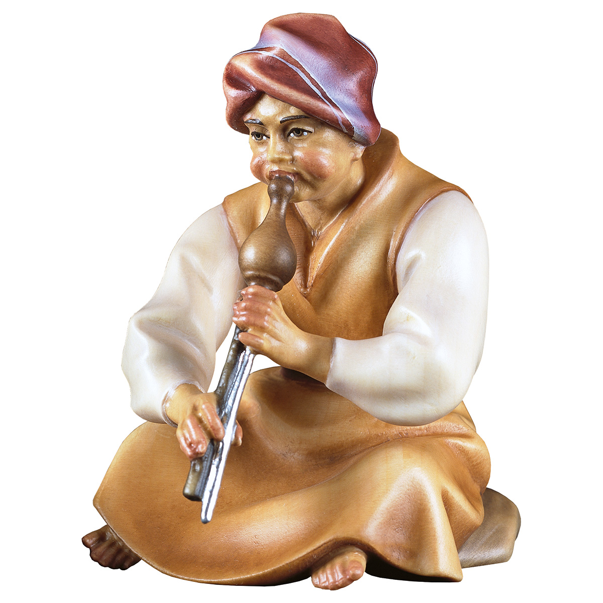 - Figur: Komet-Krippe - Hirte sitzend mit Flöte