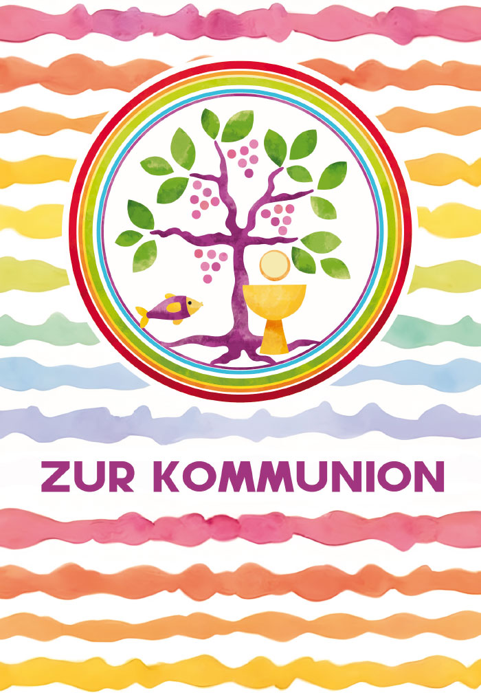 Produktinformationen "Karte zur Kommunion - Baum & Bunte Wellen"