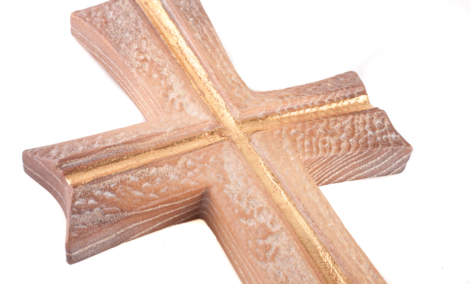 - Kreuz aus Eschenholz mit goldfarbener Bemalung