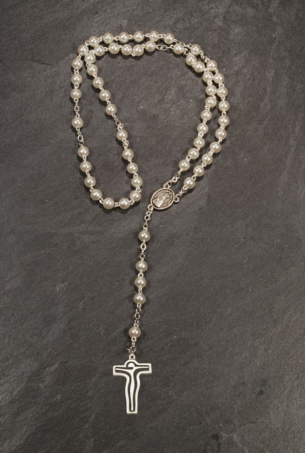 Rosenkranz - Perlmutt-Imitation & Kreuz