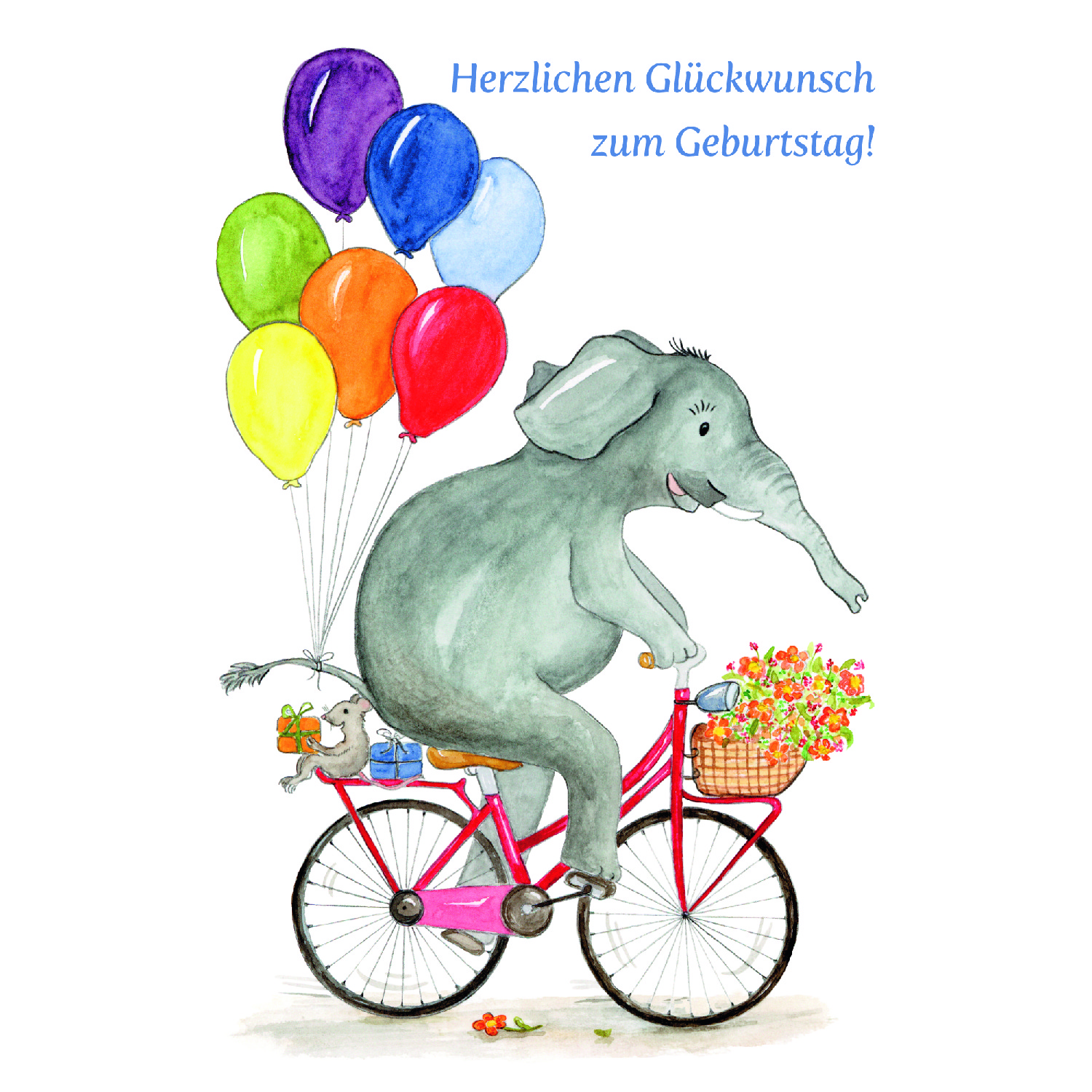 • Motiv: Elefant auf Fahrrad mit Luftballons