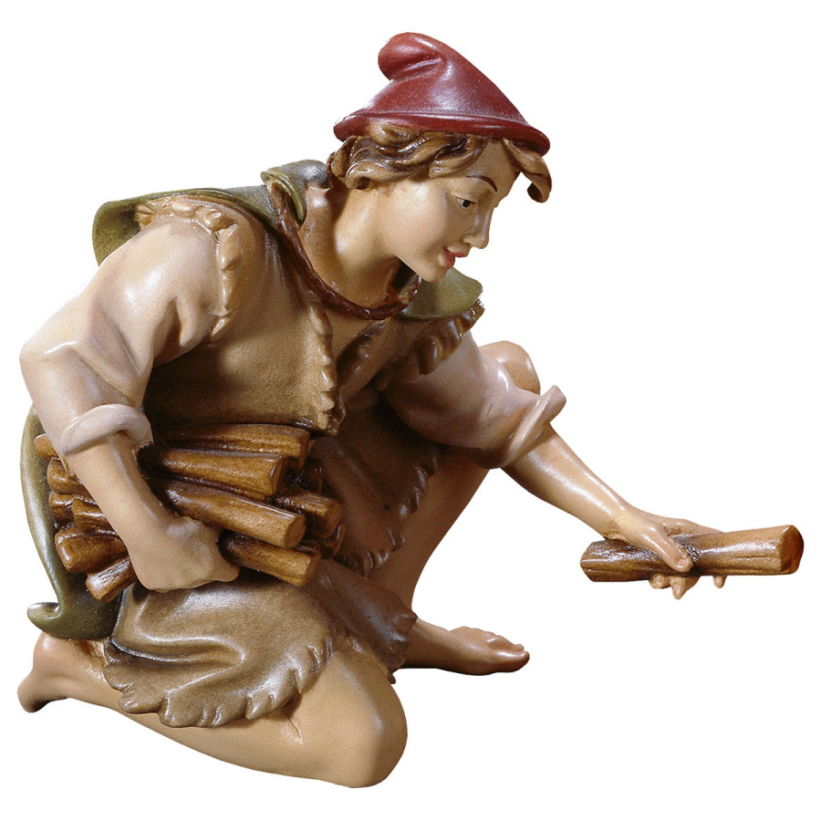 - Figur: Hirten Krippe - Hirte kniend mit Holz