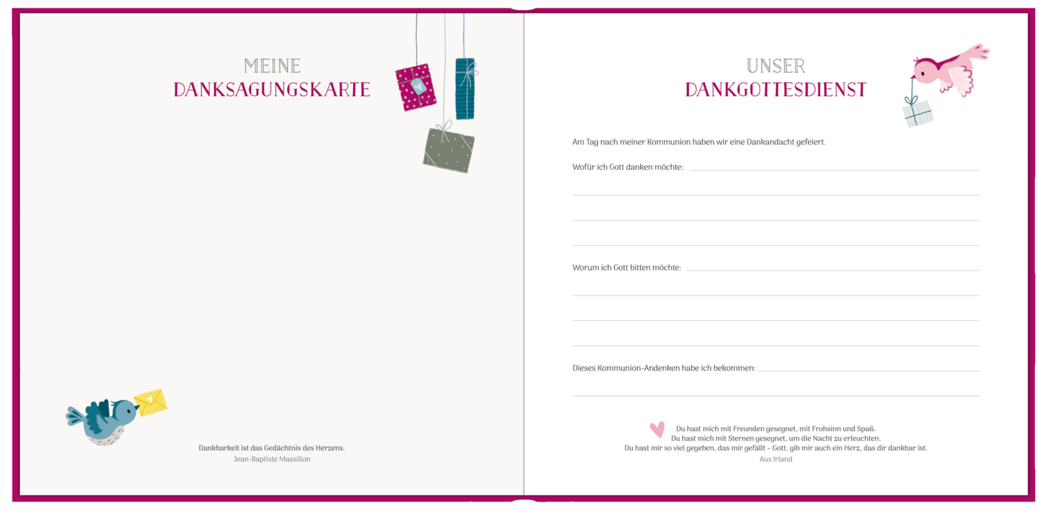 • Album mit Eintrage- und Fotoseiten, Gebeten, Liedern und guten Wünschen
