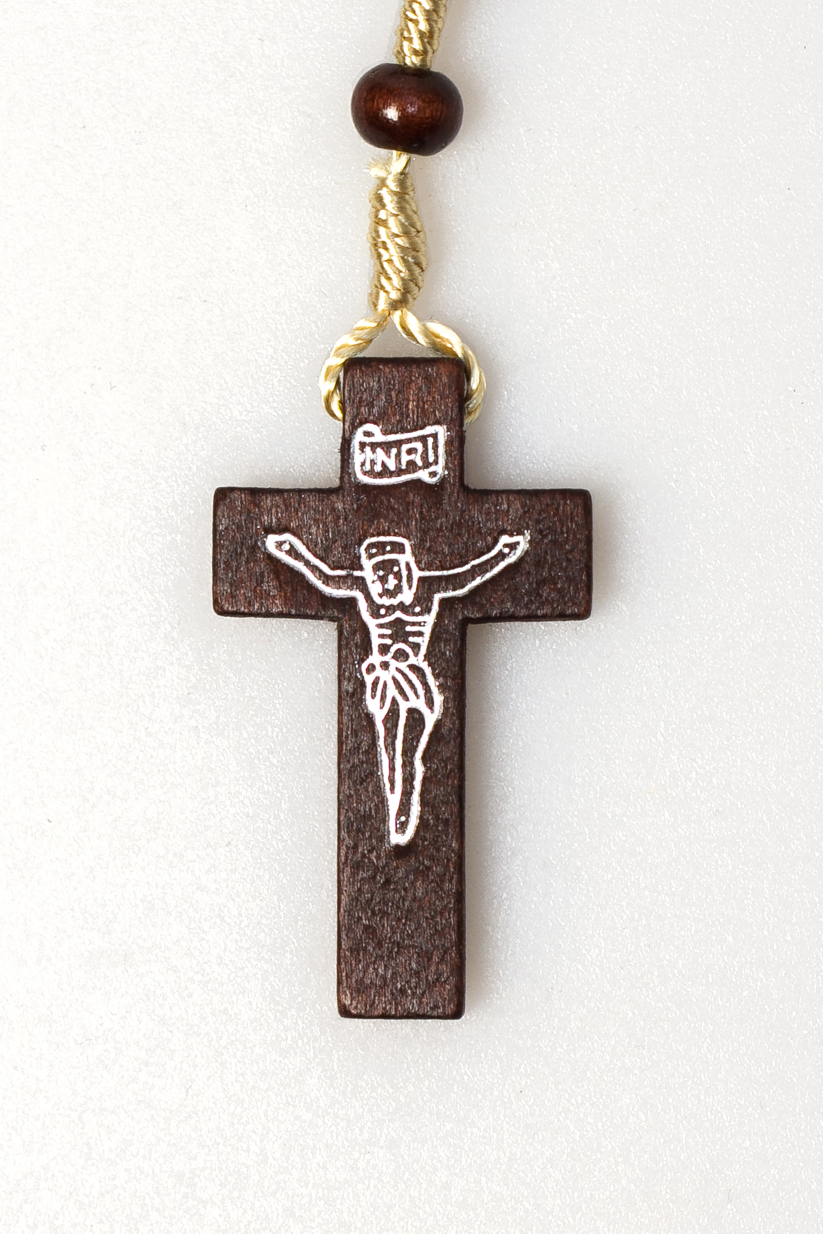 • Geknüpfter Rosenkranz mit braunen Holzperlen