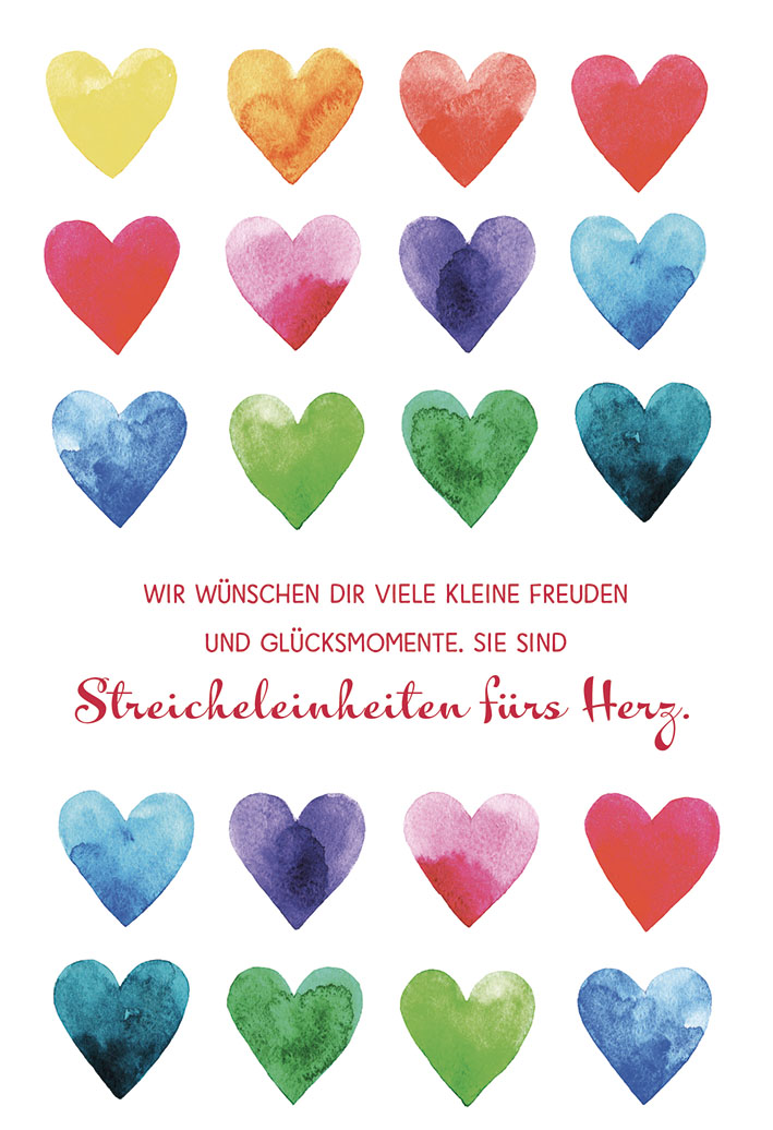 • Wir wünschen dir viele kleine Freuden und Glücksmomente. Sie sind Streicheleinheiten fürs Herz.