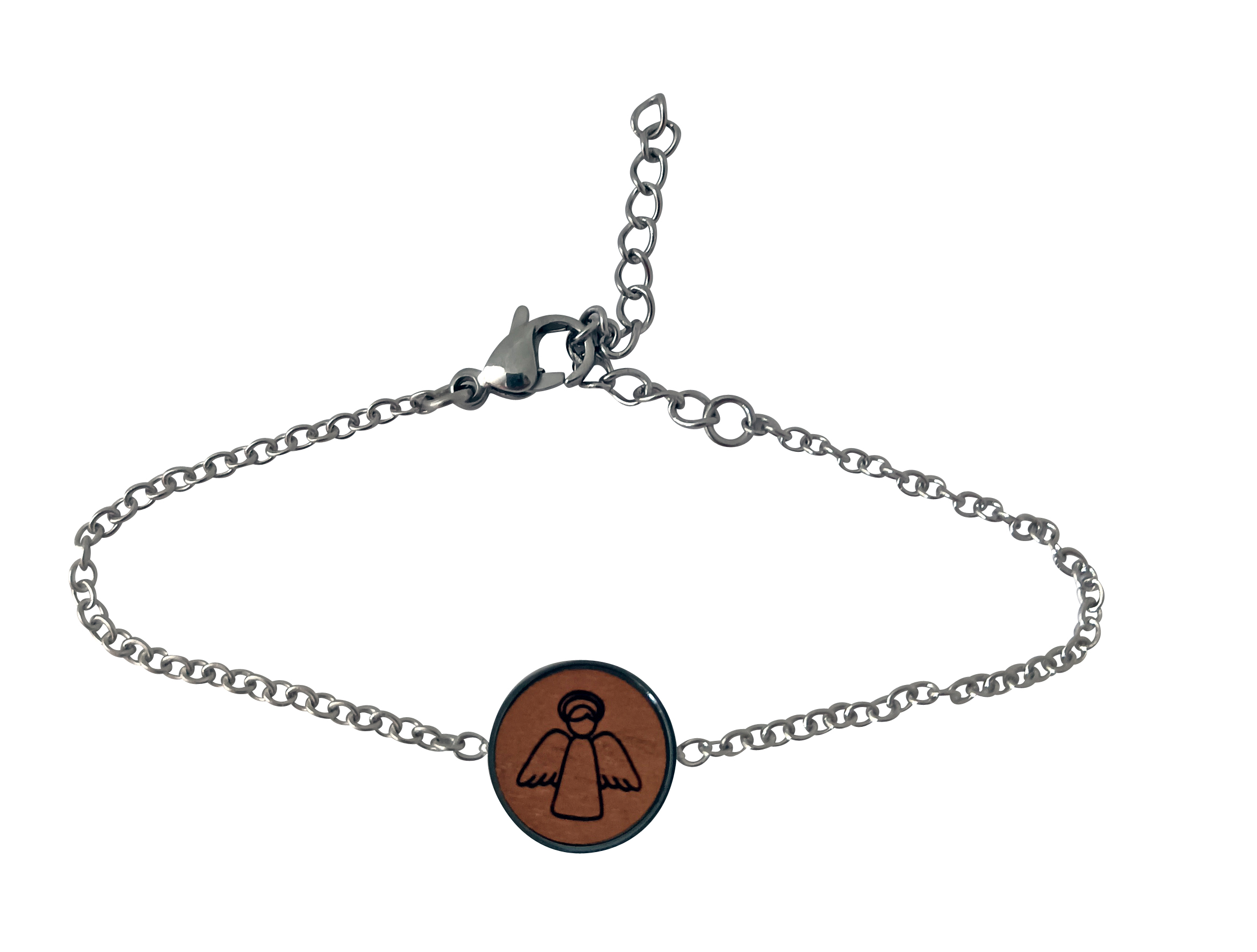 Produktinformationen "Edelstahl-Armband - Engel & Nuss-Holz"
