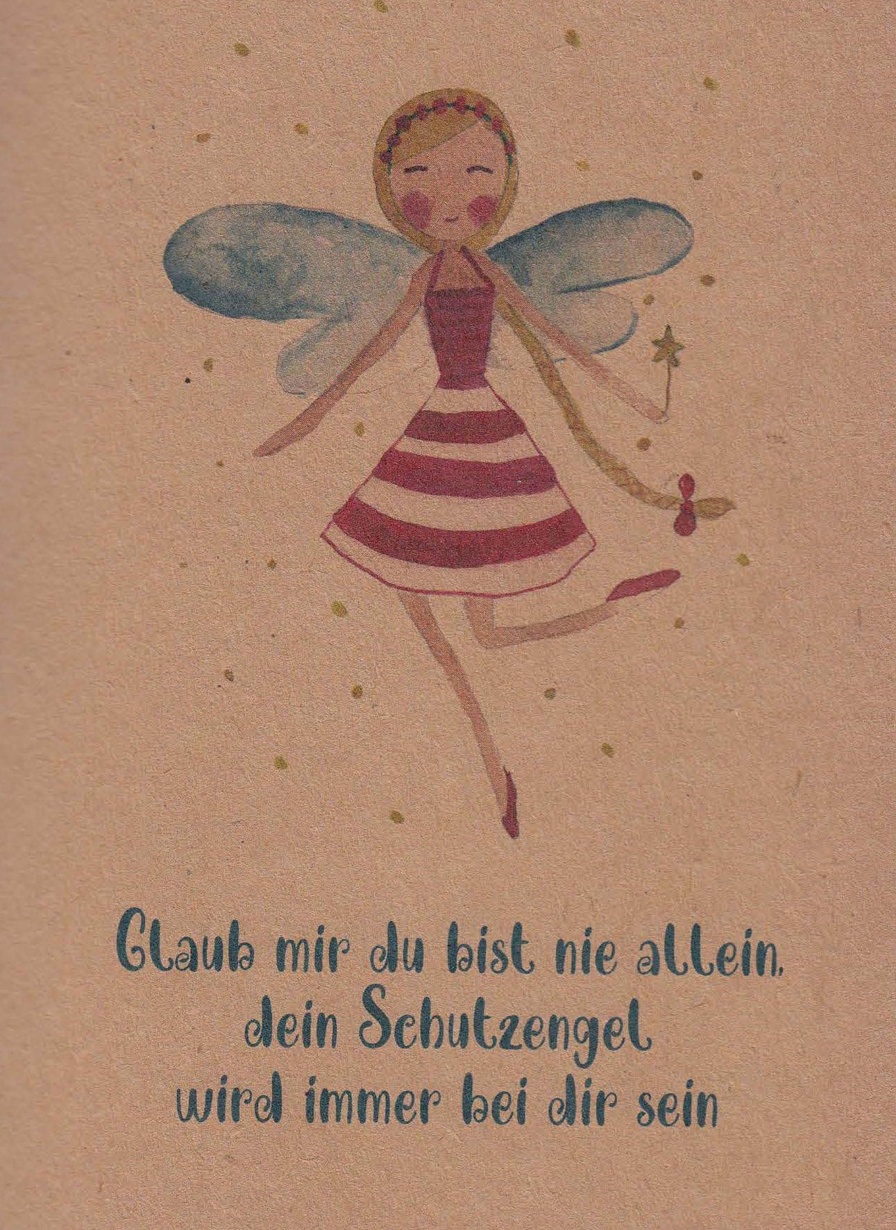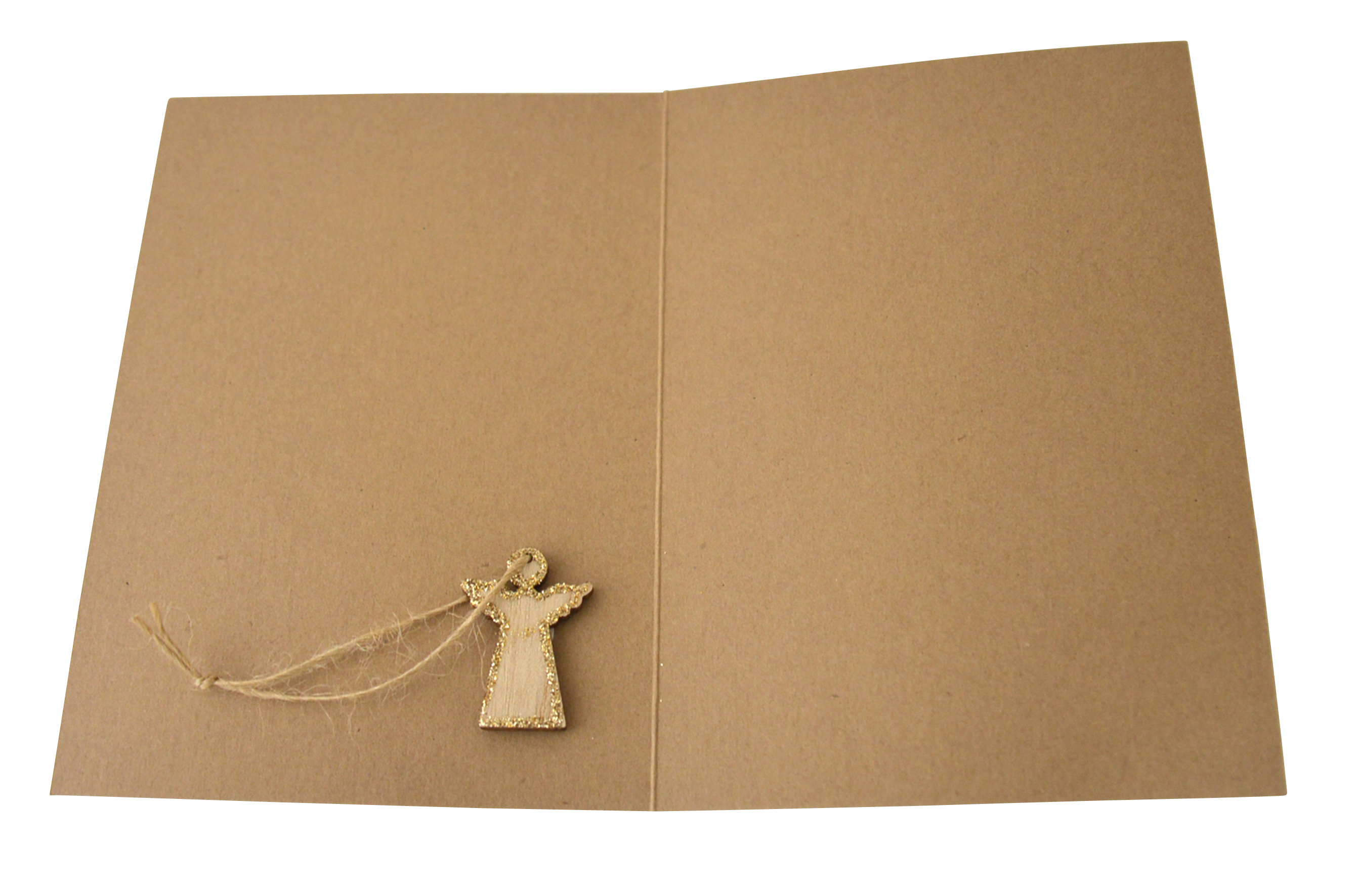 - Innenliegend klebet ein kleiner Schutzengel aus Holz.