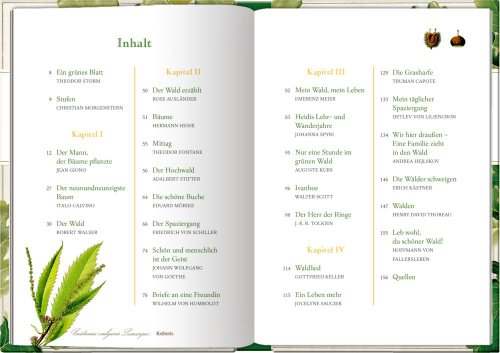 - Die schönsten Texte bekannter Autoren erzeugen das Gefühl, auf dem weichen Waldboden zu stehen, die Vögel zwitschern zu hören und die Sonne durch das Blätterdach einer Eiche blitzen zu sehen. Die wunderschönen Naturillustrationen aus der Sammlung Augustina machen die Lektüre so inspirierend wie einen Waldspaziergang.