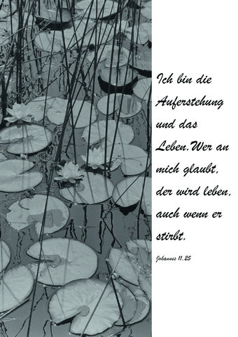 • Ich bin die Auferstehung und das Leben. Wer an mich glaubt, der wird leben, auch wenn er stirbt.