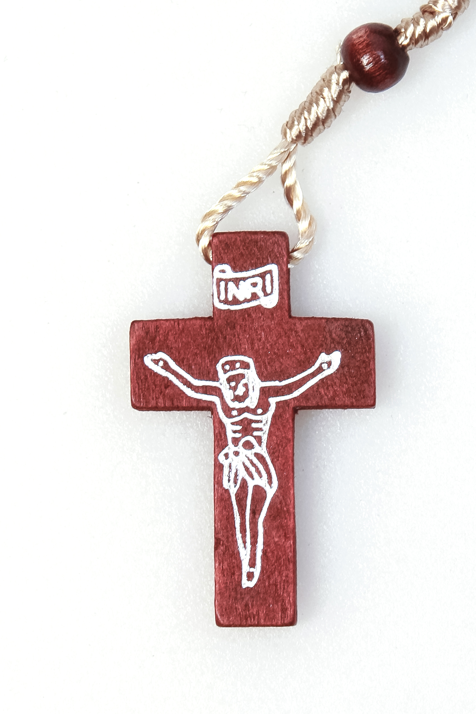• Geknüpfter Rosenkranz mit braunen Holzperlen