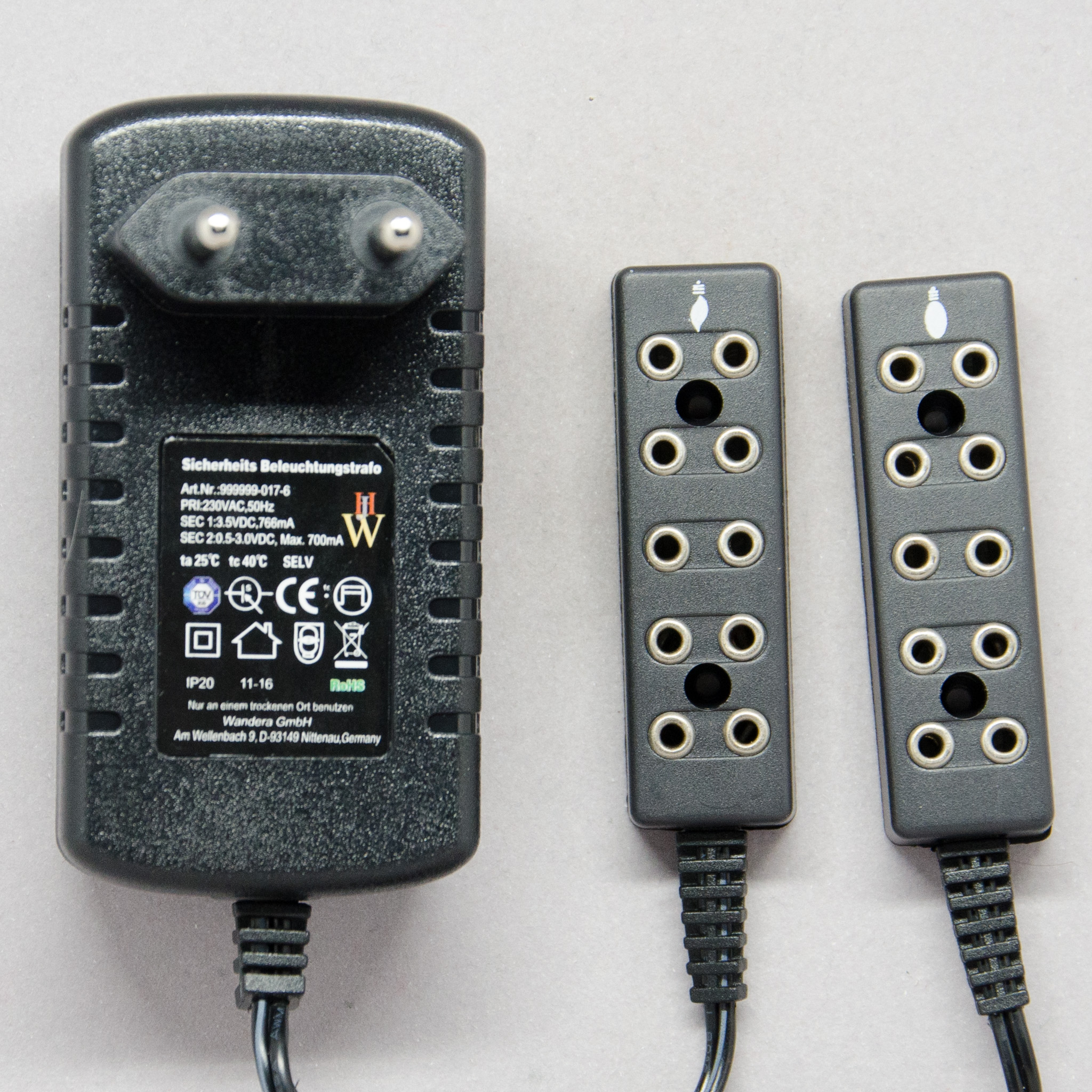 - Beleuchtungstrafo mit Verteiler zum direkten Anschluss von 3,5V Lämpchen am Dauer- und Flackerlicht.