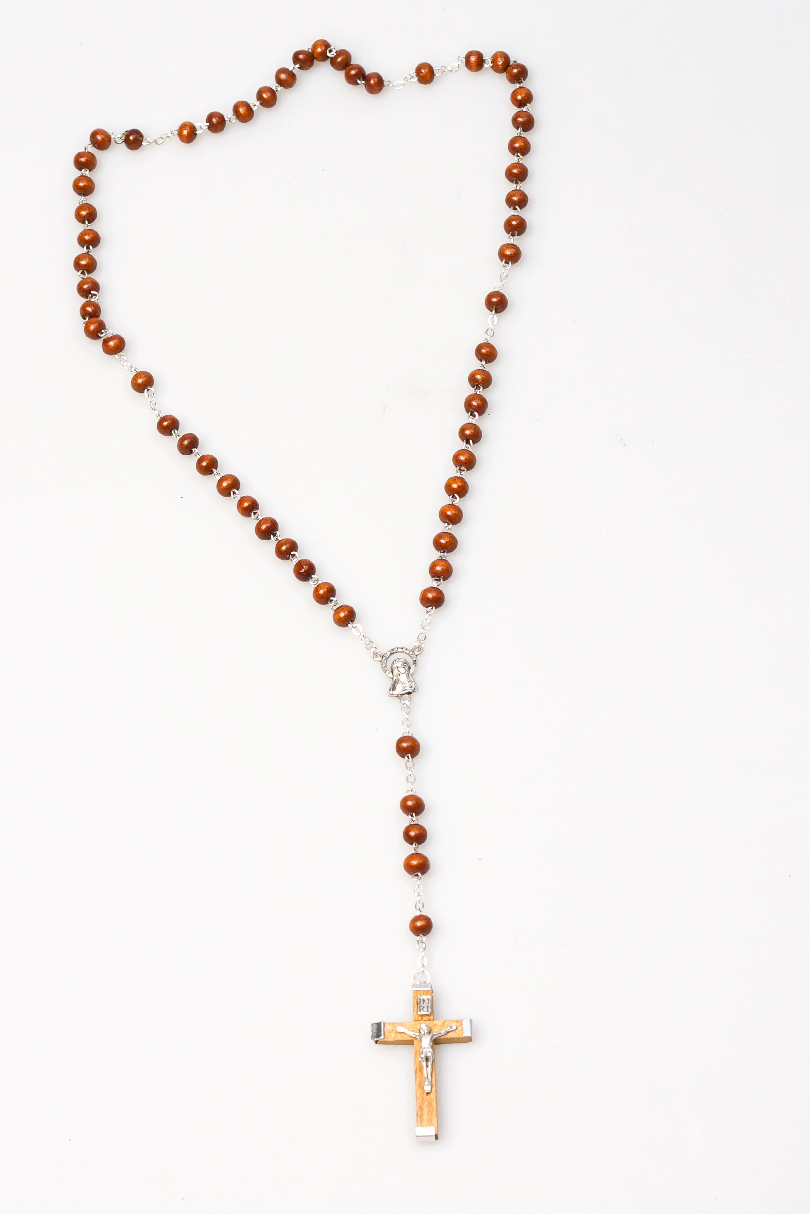 - Rosenkranz mit rötlich-braunen Holzperlen