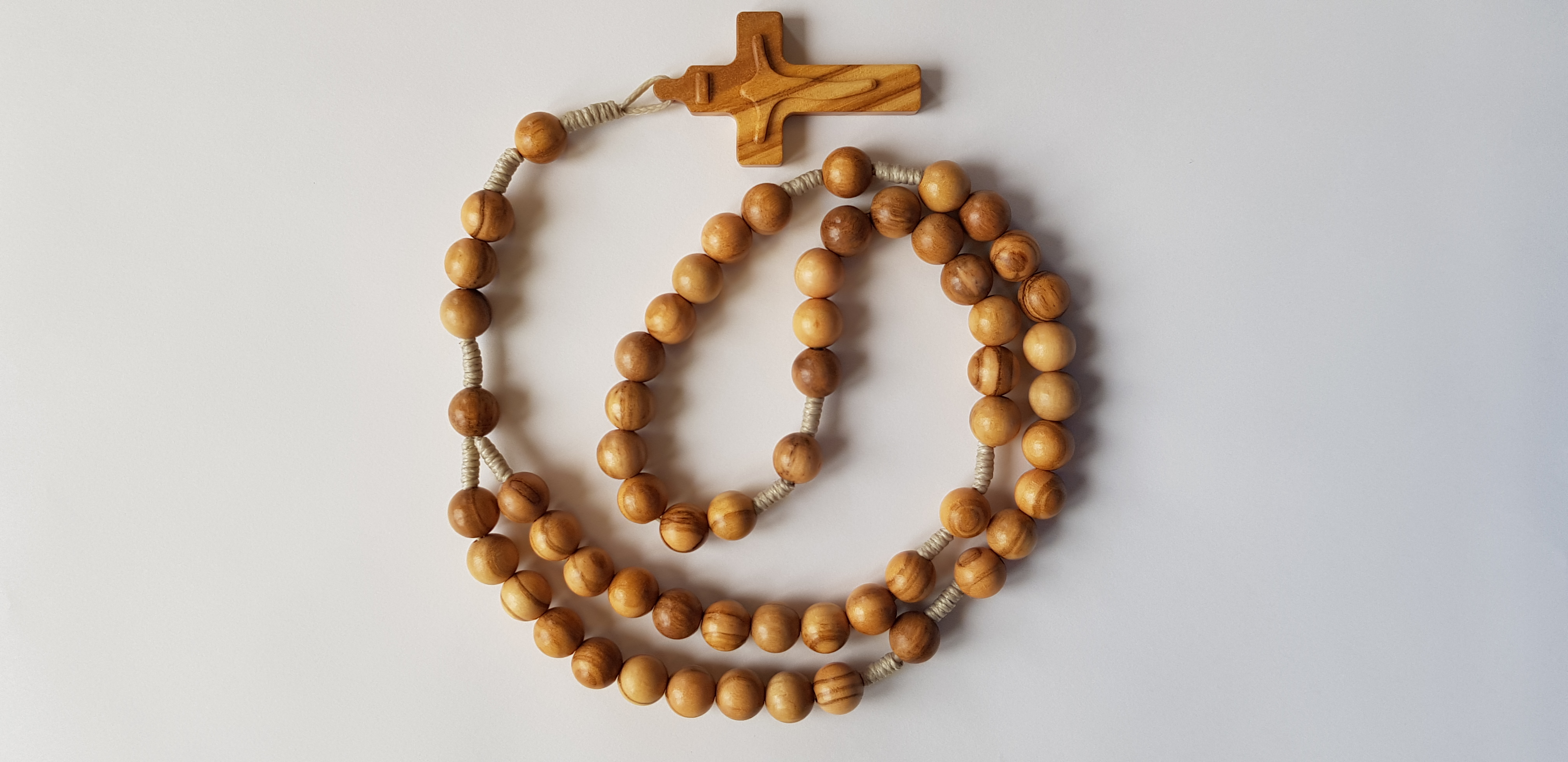 Rosenkranz - Große Olivenholzperle & Schlichtes Kreuz