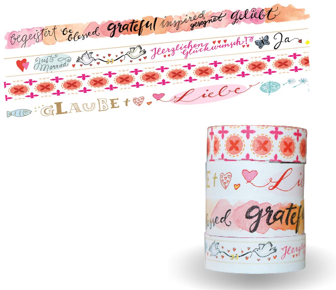- Washi- oder Klebe-Tape gibt DIY-Projekten ein individuelles Aussehen - wie gemacht für originell verpackte Geschenke, Einladungskarten, Briefe, Akten und Ordner, Notizbücher uvm. Das Tape eignet sich auch bestens zum Verschönern von Kalendern und Fotoalben.