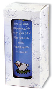 - Glas mit Spruch und abgebildet mit einem Schaf