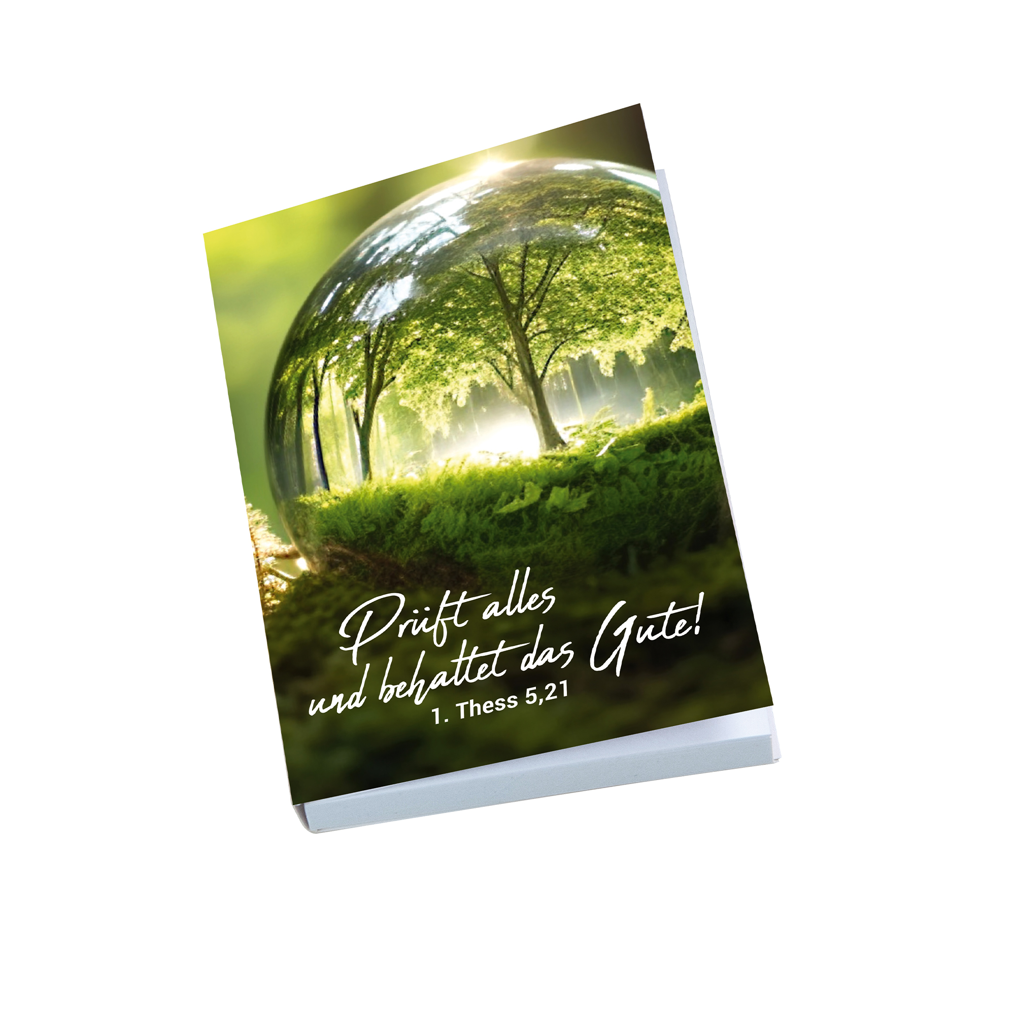 - Text auf der Vorderseite: Prüft alles und behaltet das Gute! Thess 5,21