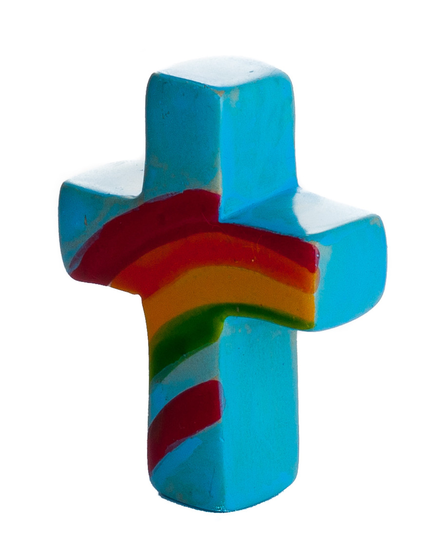 Produktinformationen "Handschmeichler - Speckstein-Kreuz mit Regenbogen"