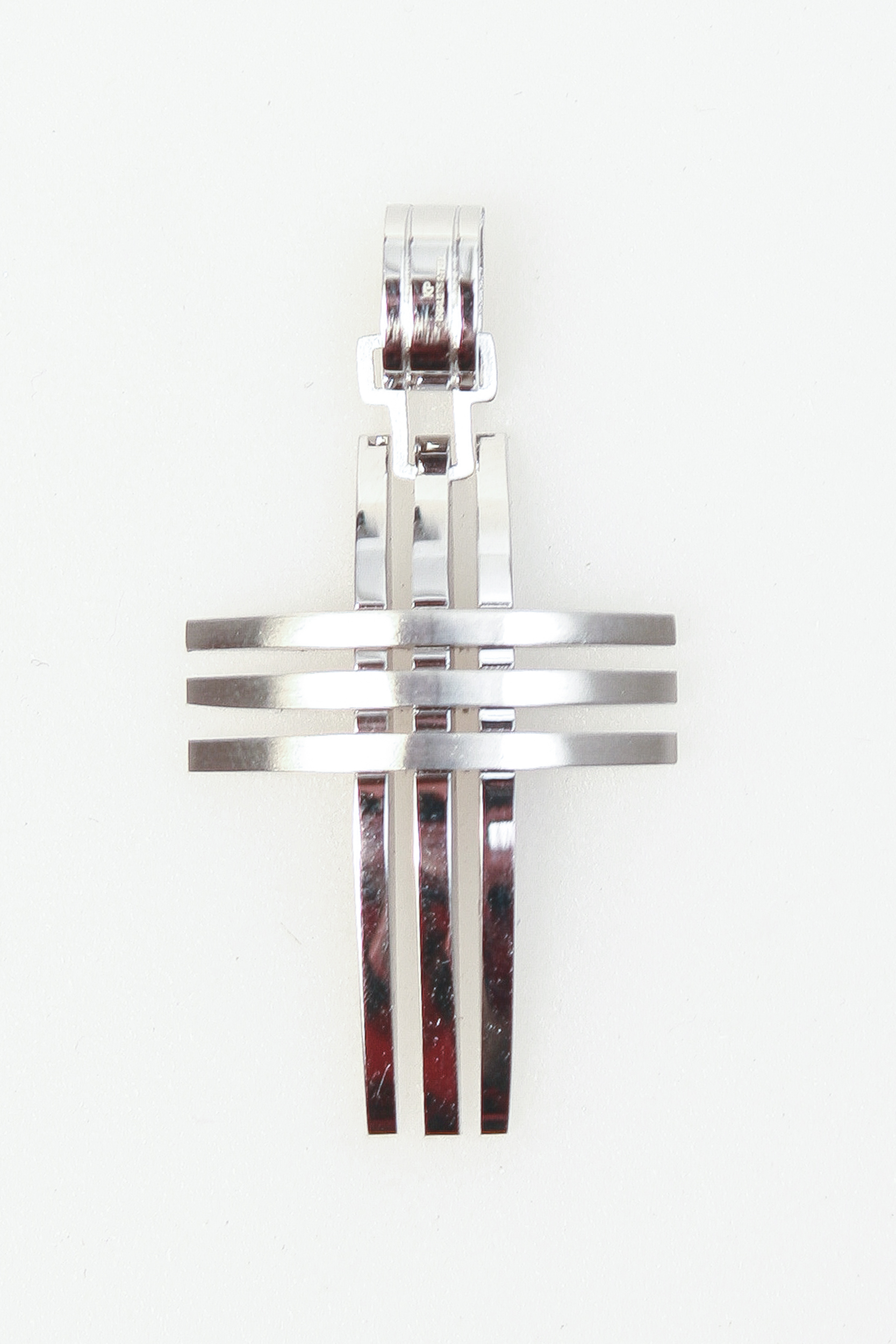 Kettenanhänger - Gestreiftes Edelstahl-Kreuz
