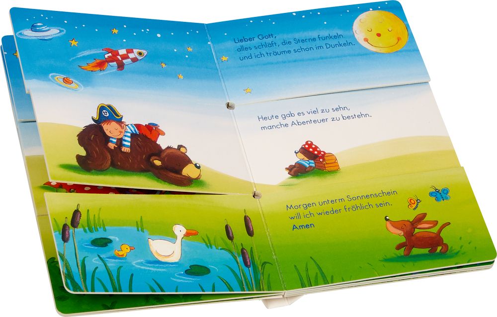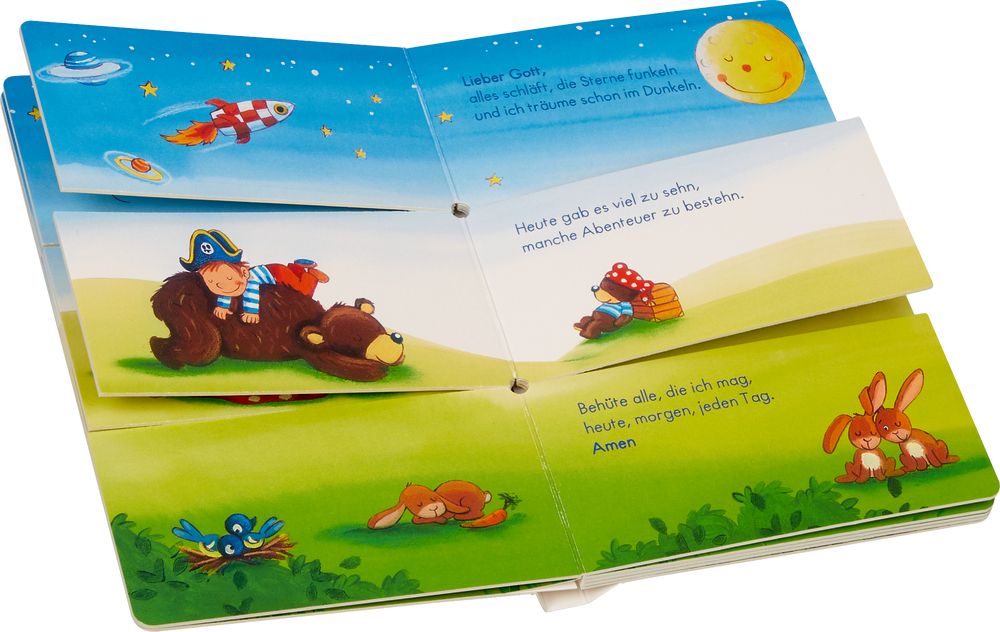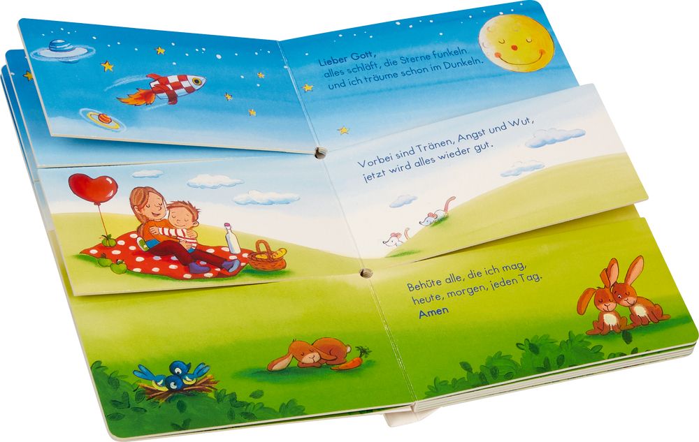 - Dieses Buch ist eine wunderbare Alternative zu Gebetswürfeln, denn hier entstehen durch das Umklappen der dreigeteilten Seiten aus 6 Gebeten mehr als 200! Über das Umblättern und Mixen der Buchseiten können Kinder selbst entscheiden, welches Gebet sie heute sprechen möchten, und lernen ganz nebenbei spielerisch das Beten.