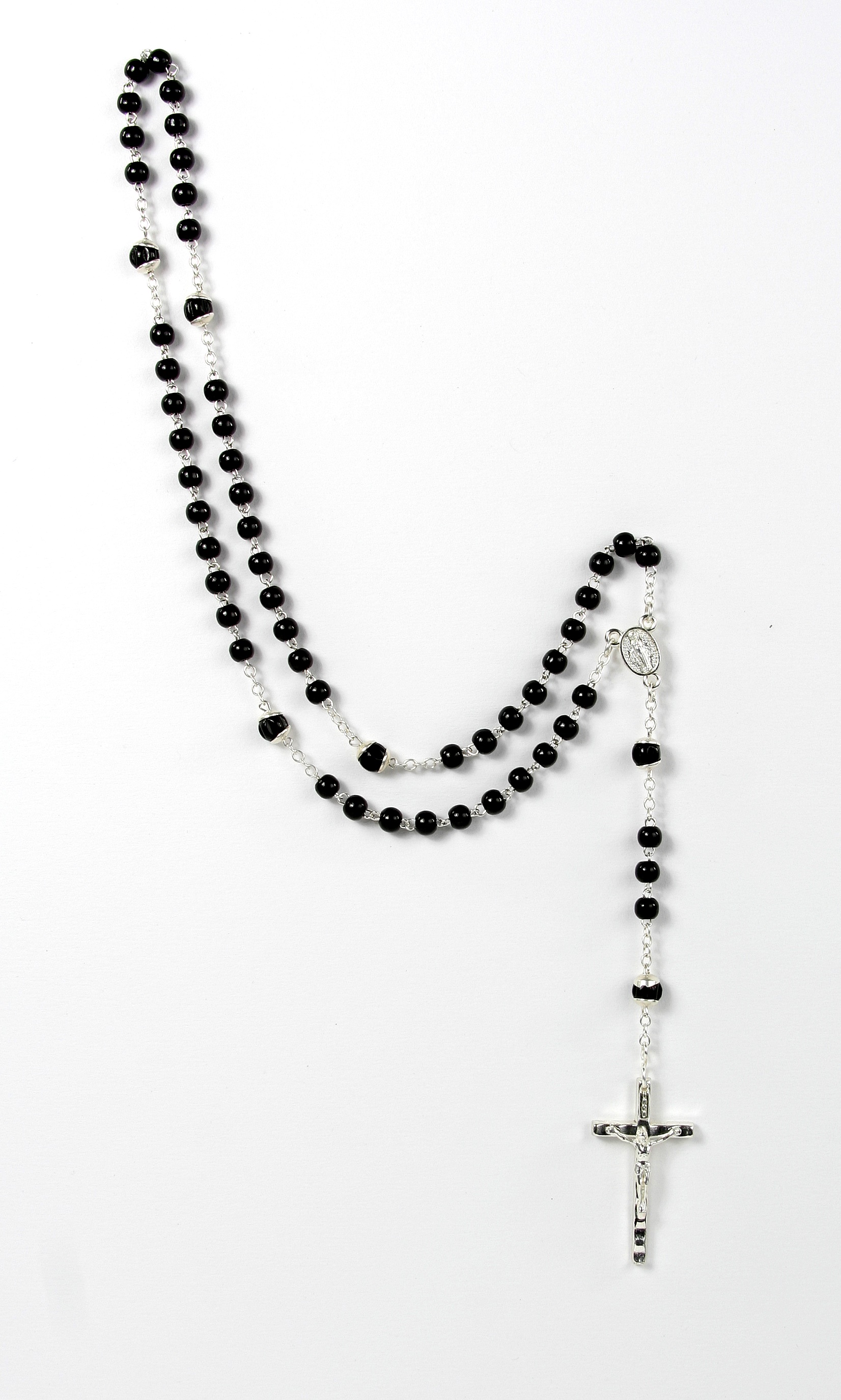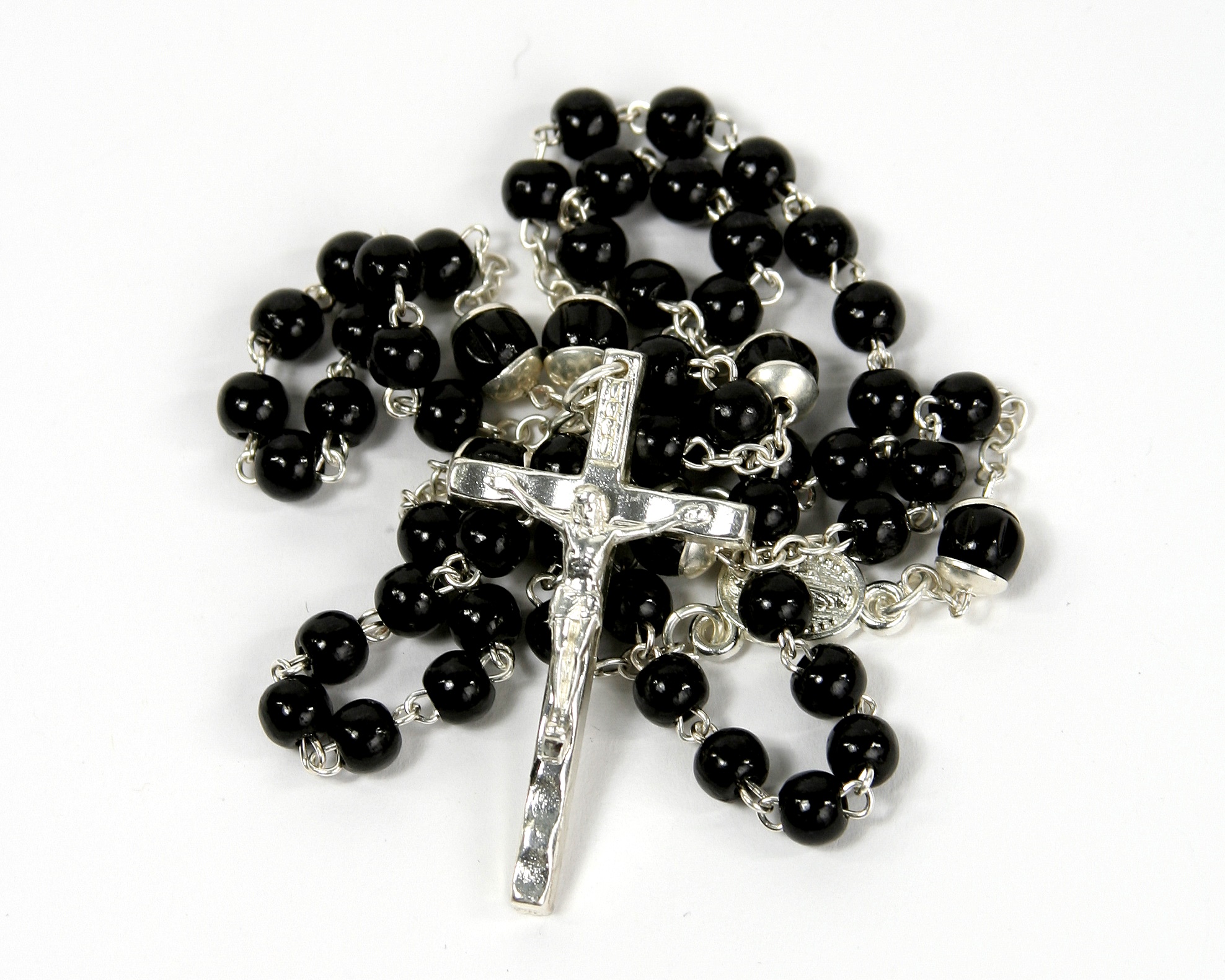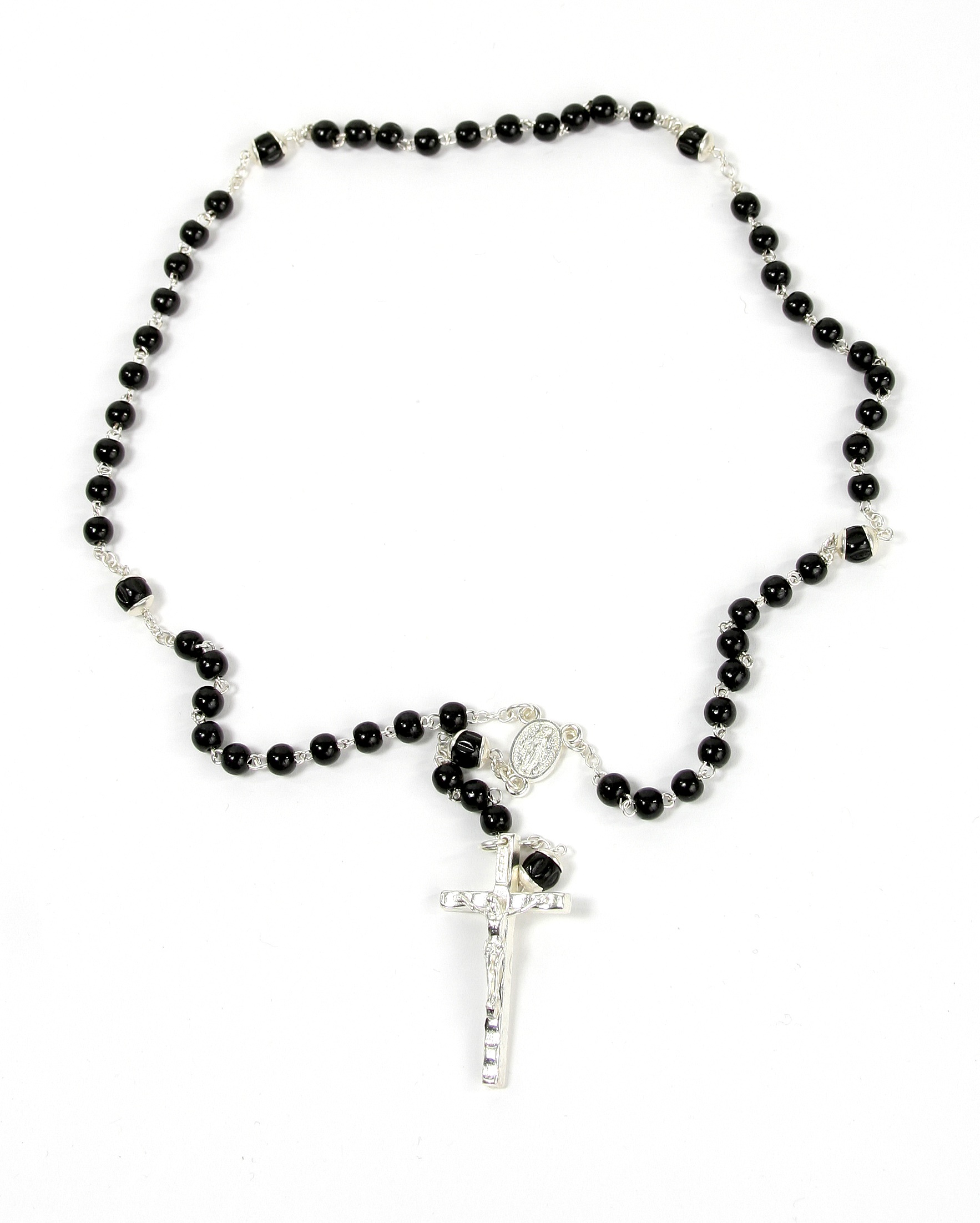 Produktinformationen "Rosenkranz - Schwarz verzierte Perle & Silberfarbenes Kreuz"