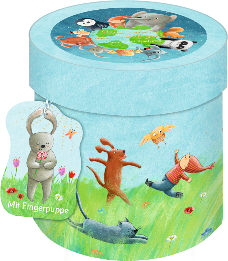- Die hochwertige Dose aus Karton ist ein wunderschönes Geschenk zur Taufe. 30 Kärtchen mit Gebeten, Finger- und Krabbelspielen sowie fröhlichen Versen bieten eine unterhaltsame Kinderbeschäftigung. Mit der beiliegenden Fingerpuppe können Sie das Spielen zusätzlich aktiv unterstützen.