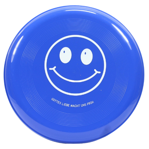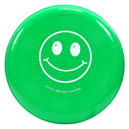 - Frisbeescheibe mit Simeily und Spruch "Gottes Liebe macht uns froh"