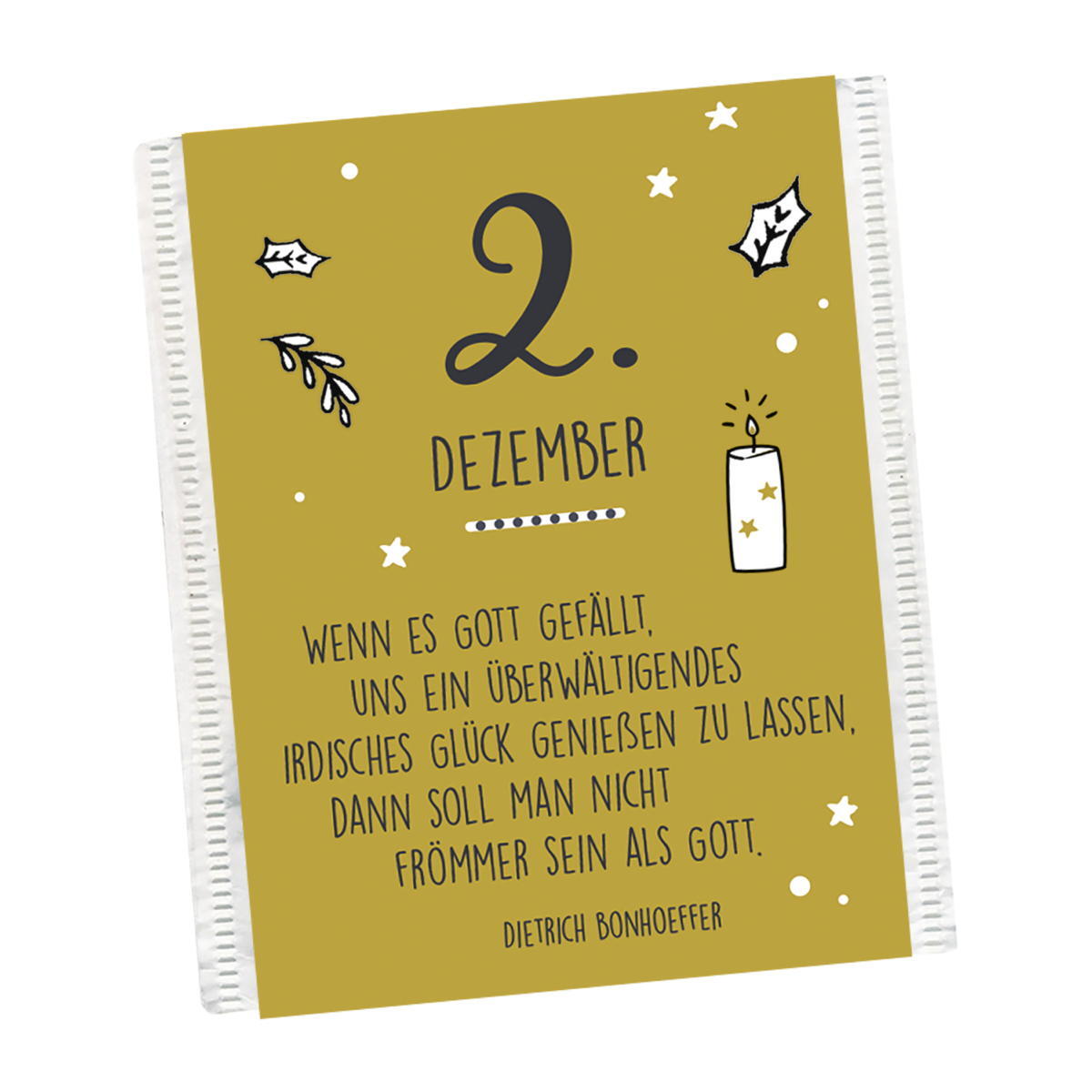 - Jedes Tütchen ist zudem adventlich gestaltet und mit einem besinnlichen Impuls versehen. So kommt damit nicht nur der Körper, sondern auch die Seele zur Ruhe. Die inspirierenden Zitate, Segenswünsche oder auch Denkanstöße stammen von bekannten christlichen Persönlichkeiten und laden in der hektischen Adventszeit zum Innehalten ein.