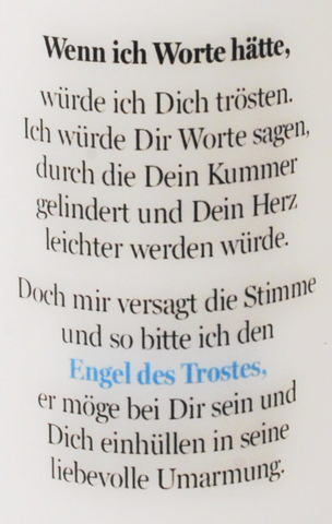 - Doch mir versagt die Stimme und so bitte ich den Engel des Trostes, er möge bei Dir sein und Dich einhüllen in seine liebevolle Umarmung.