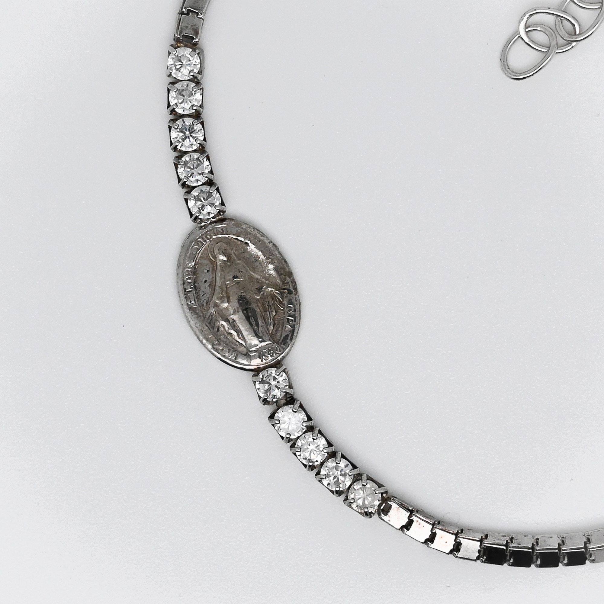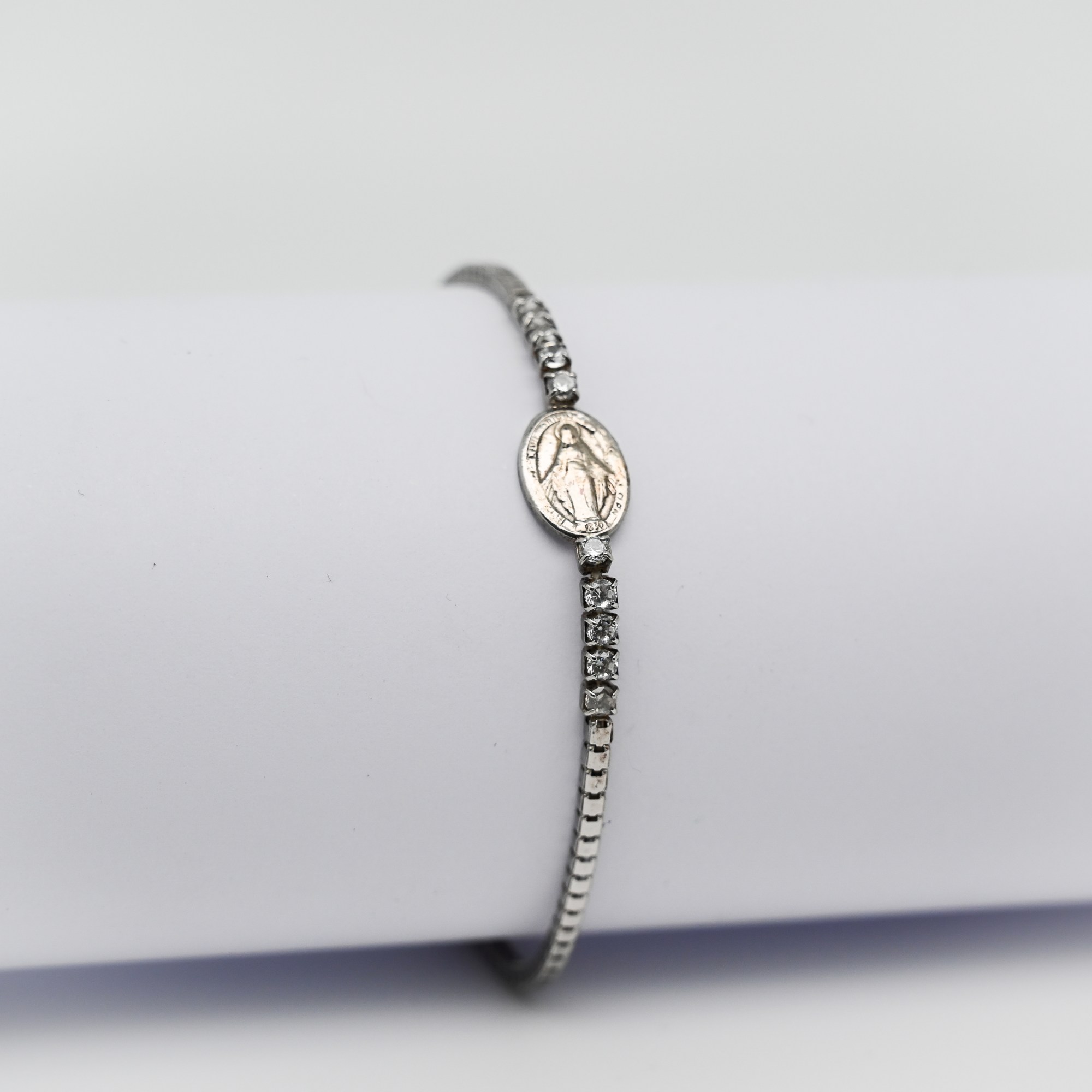 - Rechts und links des eingearbeiteten Anhängers sind je 5 weiße Zirkonia eingesetzt