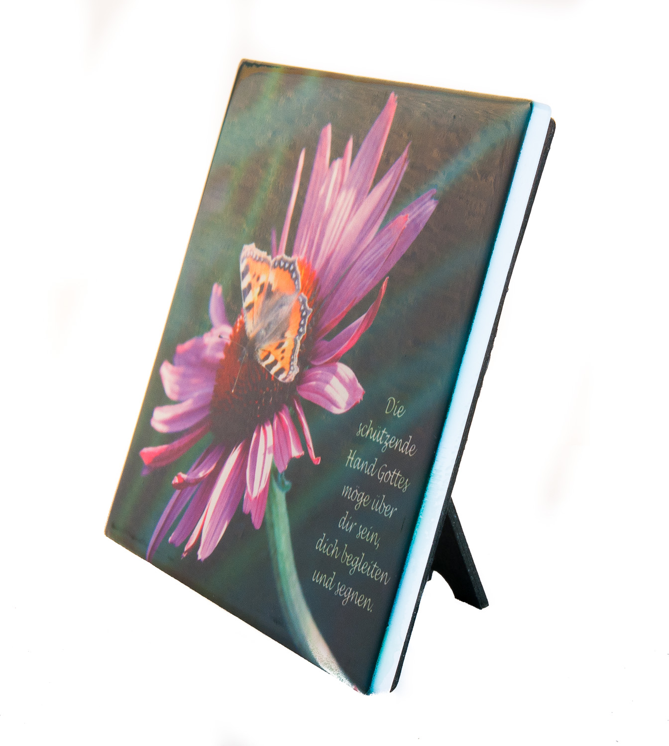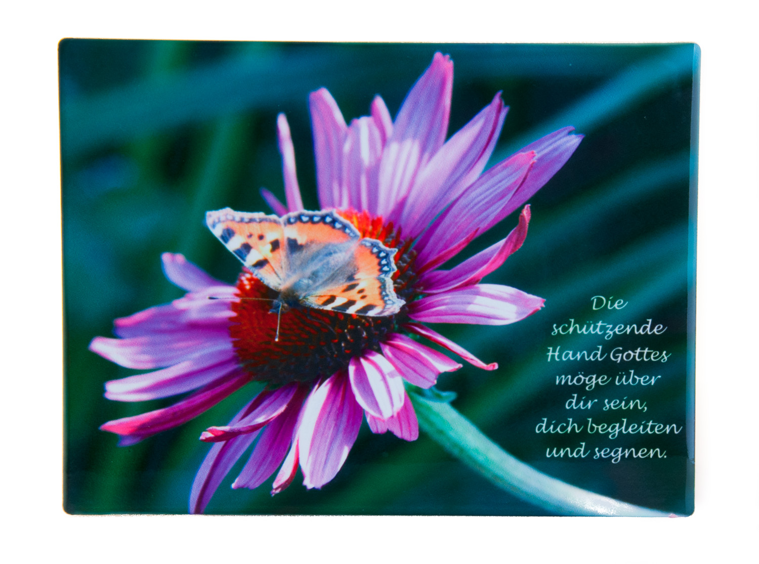 • Mit farbigem Motiv "Schmetterling auf Blume"