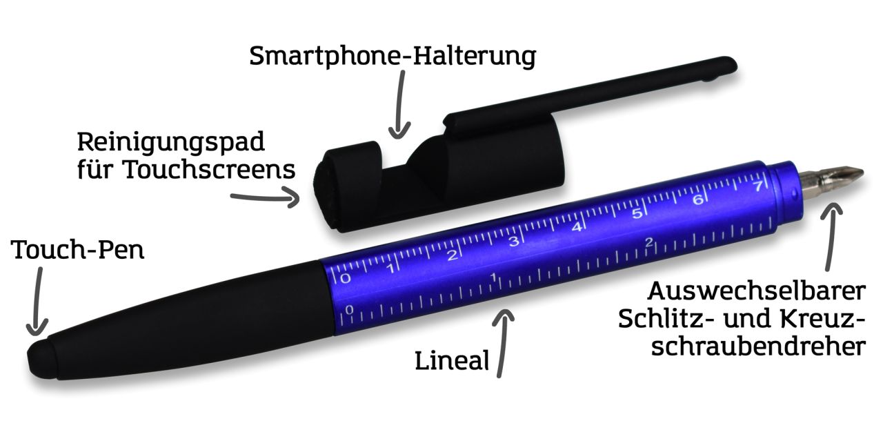 - Ein Dreh-Kugelschreiber mit 7 Funktionen