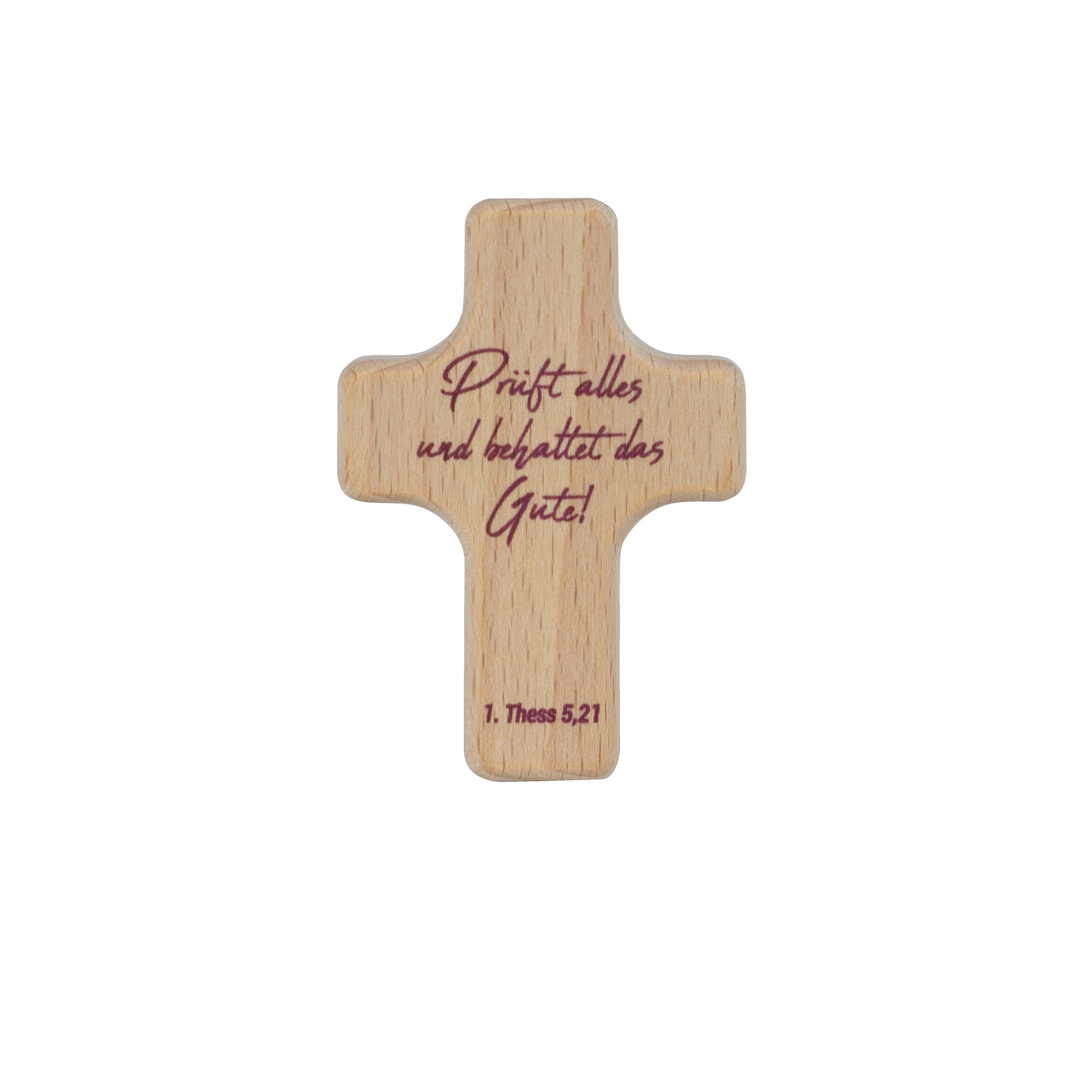 - Text auf der Vorderseite: Prüft alles und behaltet das Gute. Thess 5,21
