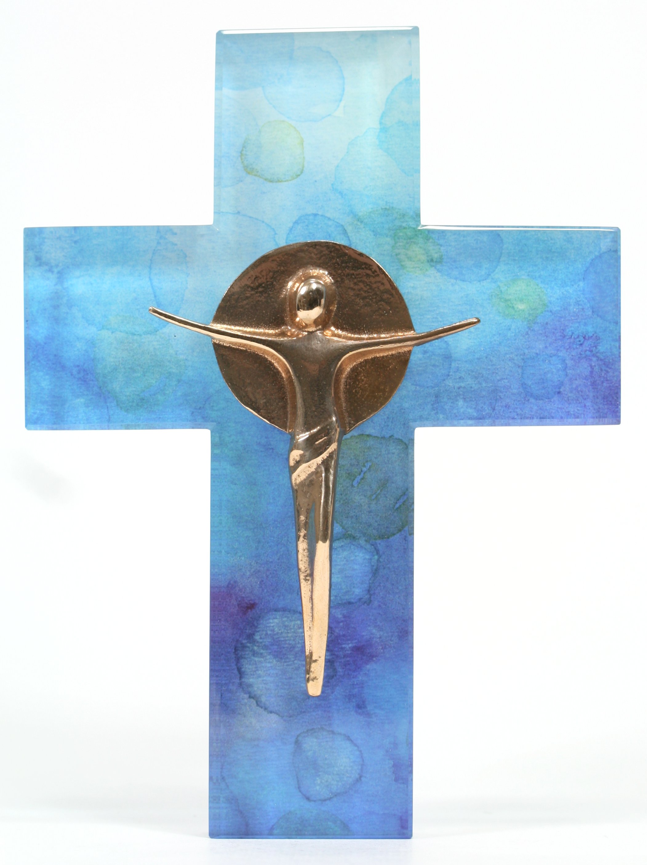 Produktinformationen "Schmuckkreuz - Blaues Glaskreuz & Bronzekörper"