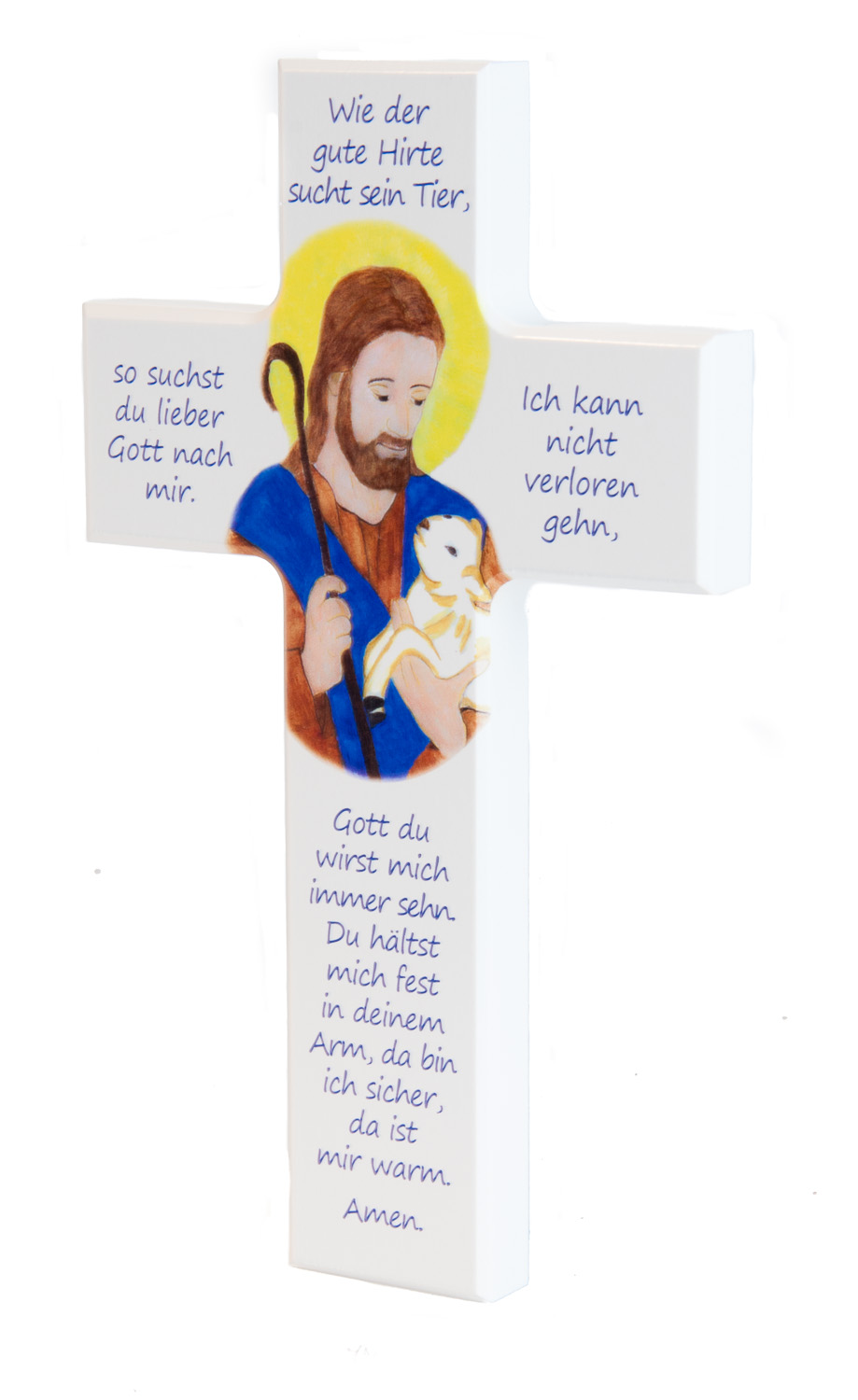 Kinderkreuz - Guter Hirte & Weiß lackiert