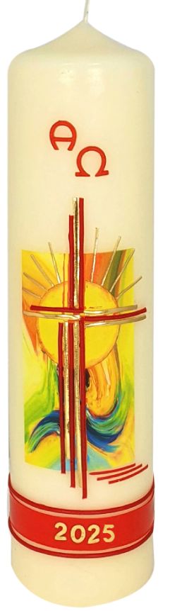 Osterkerze - Kreuz und Sonne & Jahreszahl