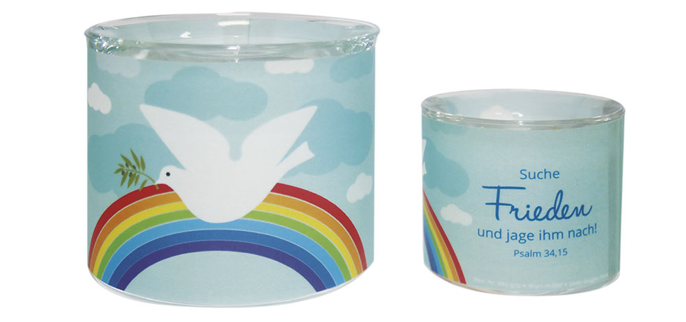 - Text auf dem Glas: "Suche Frieden und jage ihm nach! Psalm 34,15"