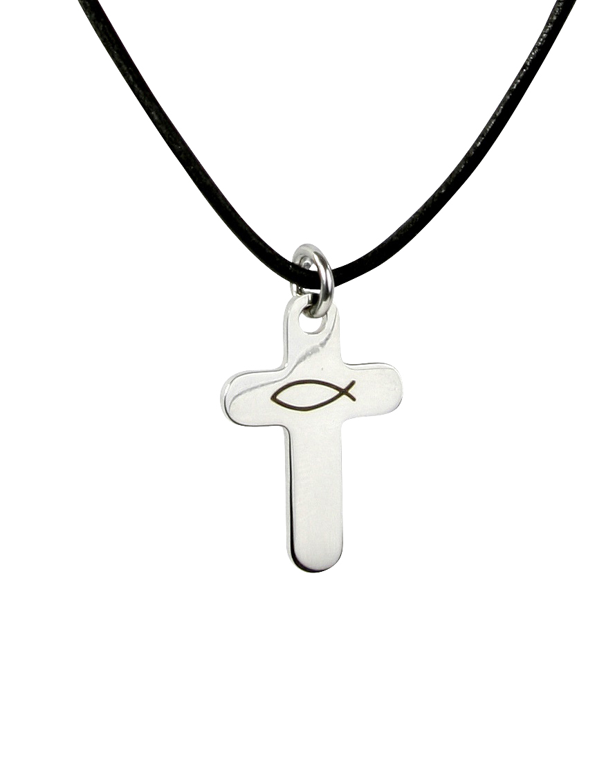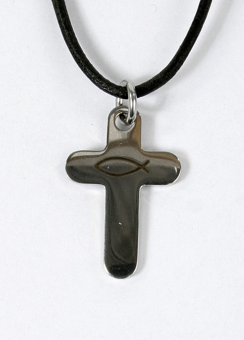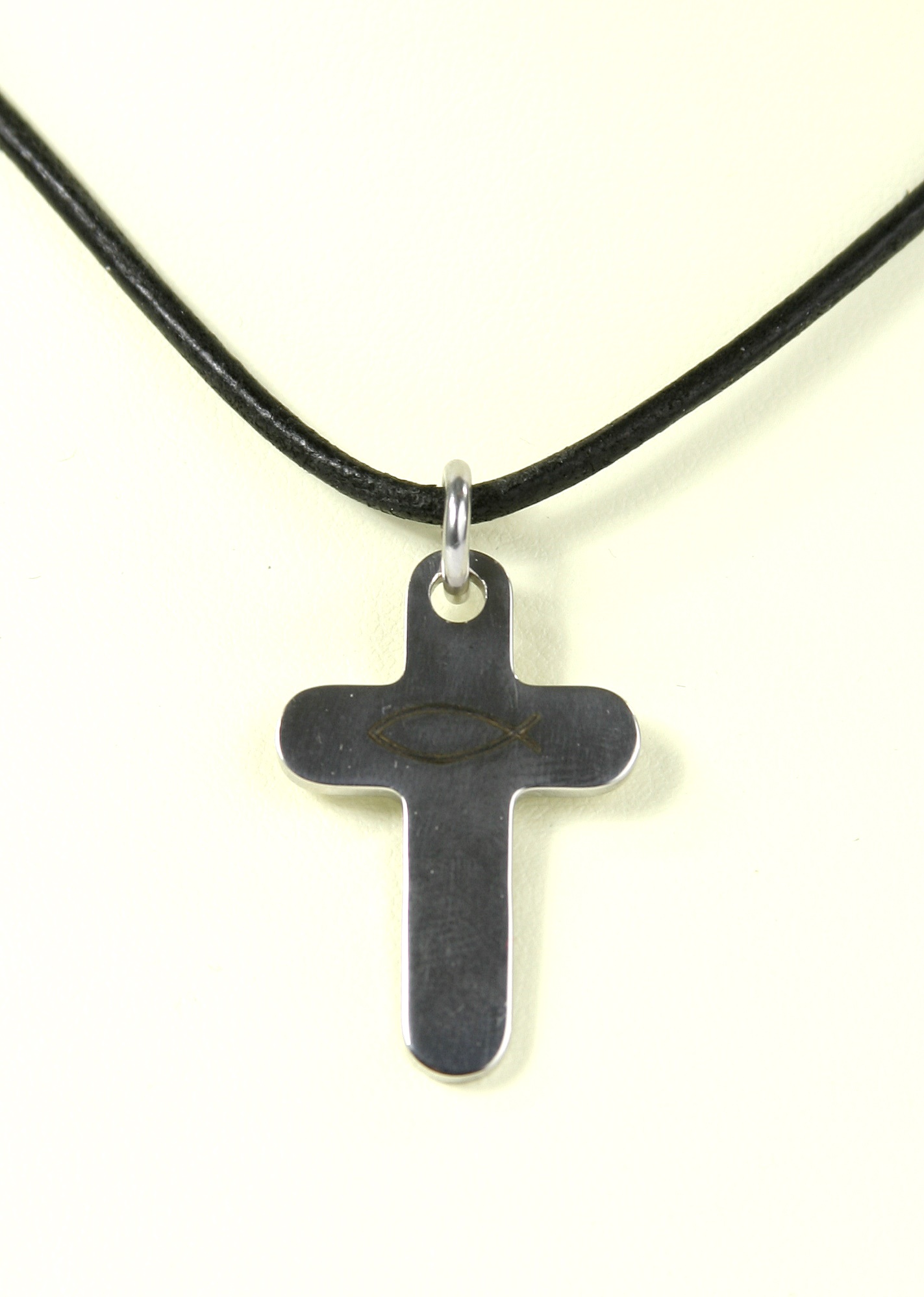 Produktinformationen "Halskette - Stahlkreuz Klein & Fisch"