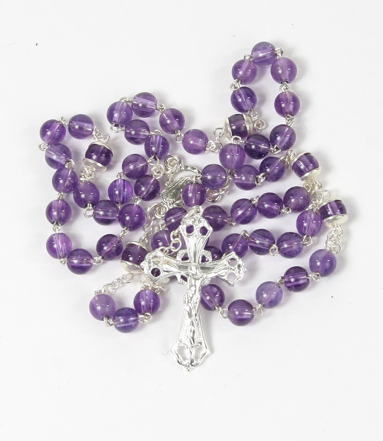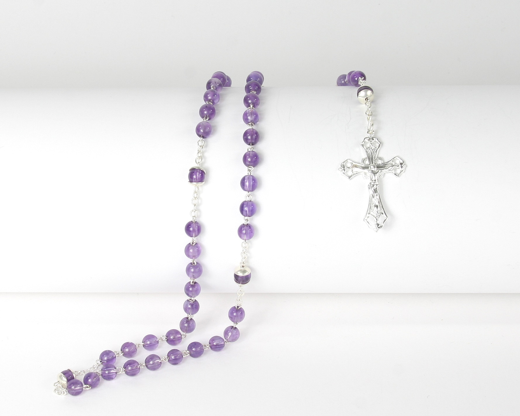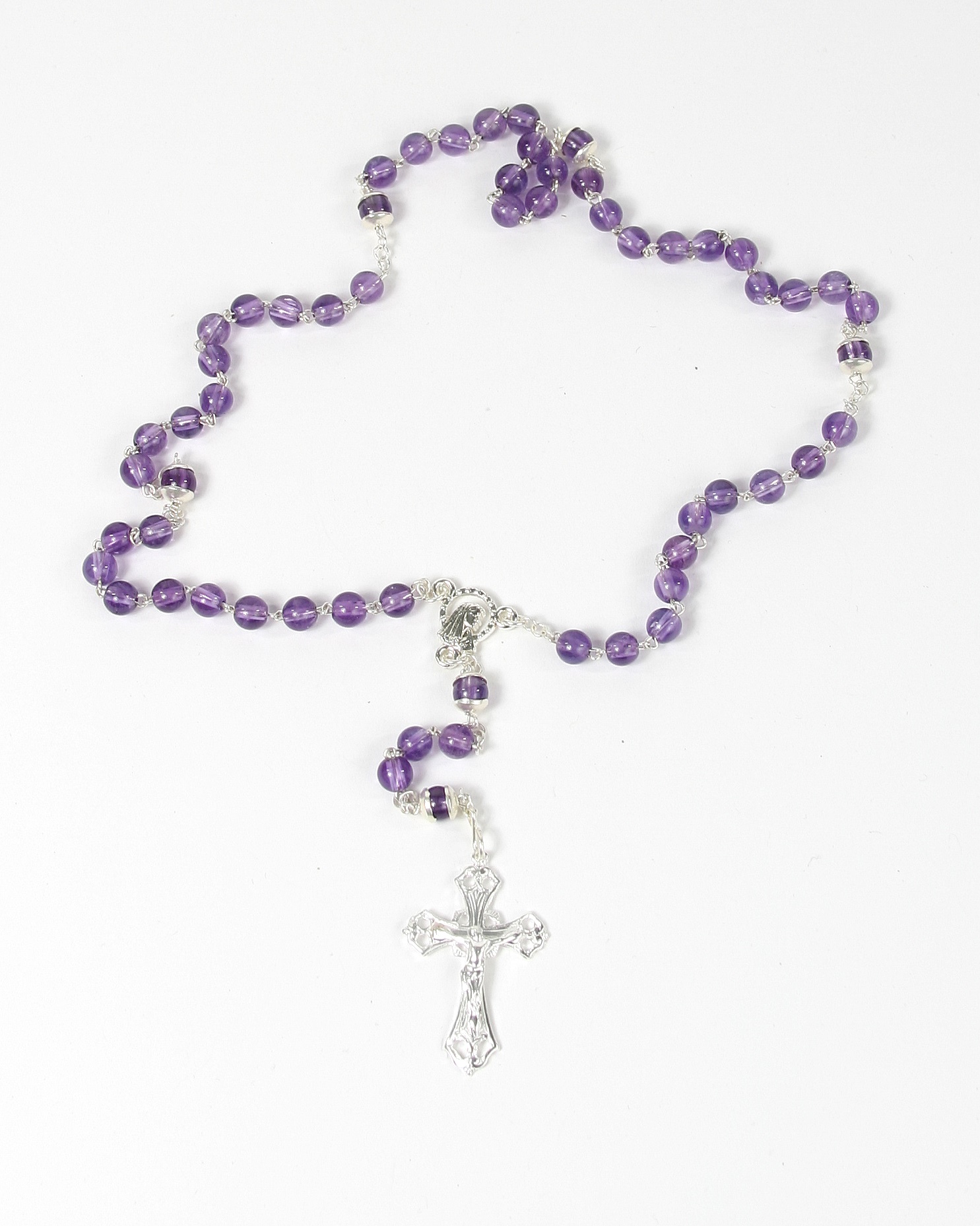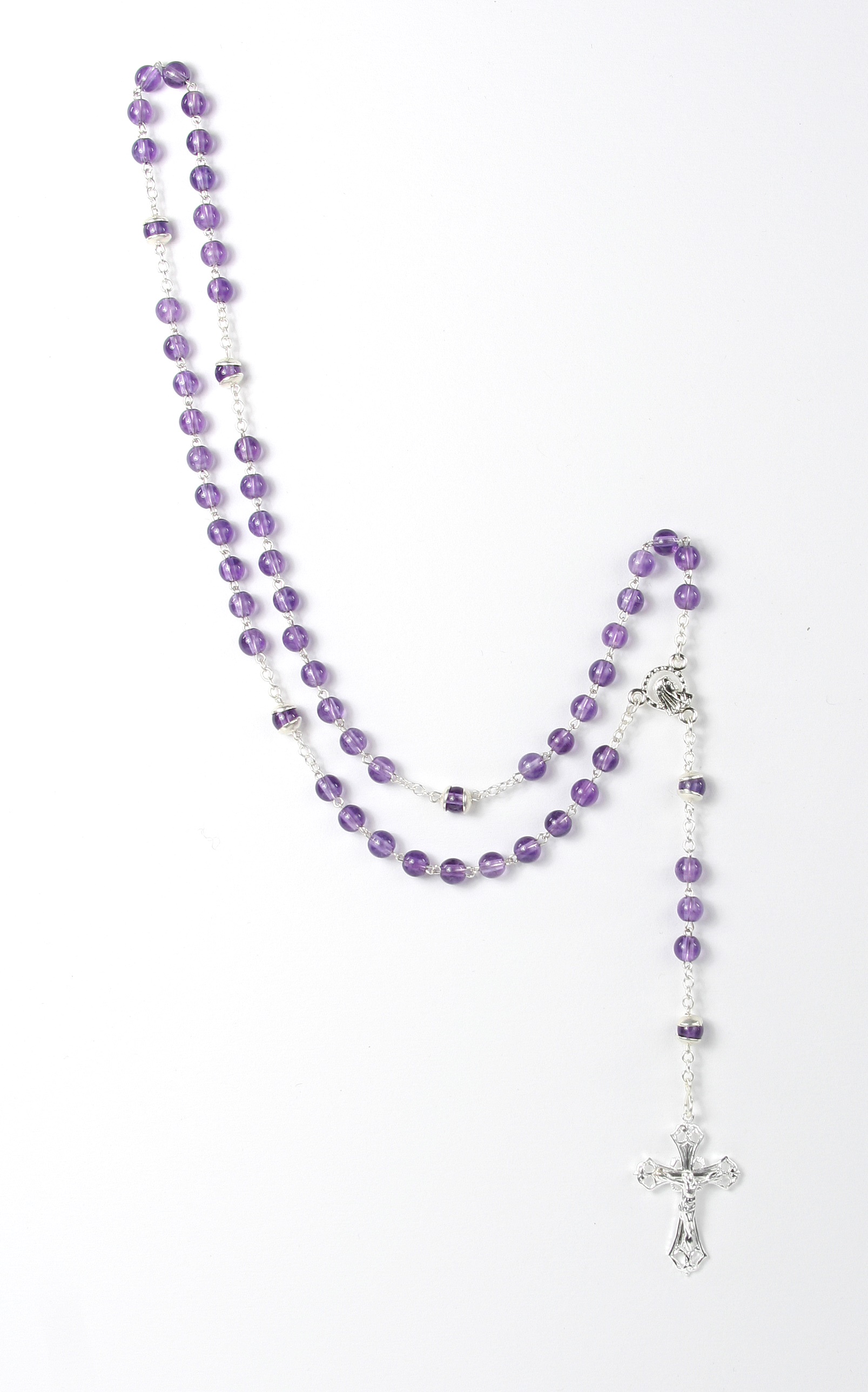 Rosenkranz - Amethyst & Silberfarbenes Kreuz