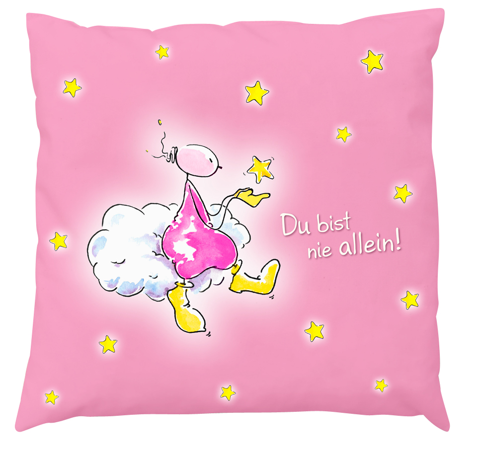 - Text auf der Vorderseite des Kissens: "Du bist nie allein!"