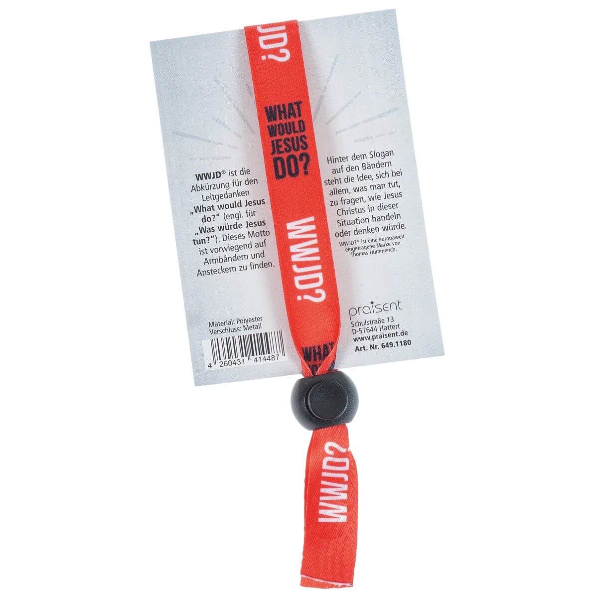 - Hinter dem Slogan auf den Bändern steht die Idee, sich bei allem, was man tut, zu fragen, wie Jesus Christus in dieser Situation handeln oder denken würde. Eine entsprechende Erklärung befindet sich auf der Verpackung.