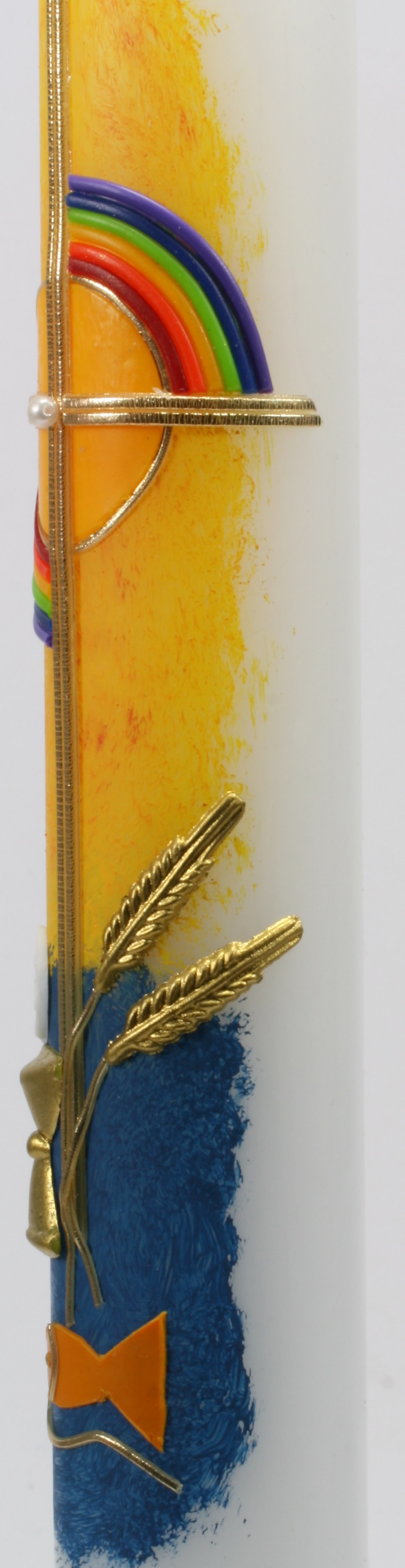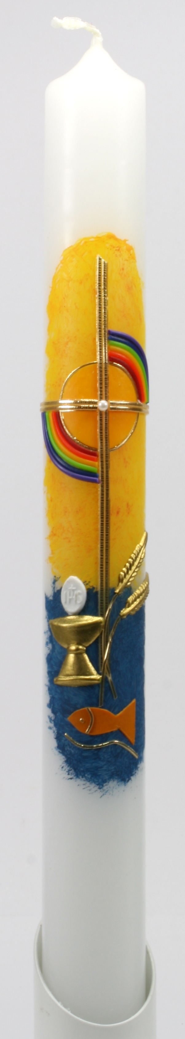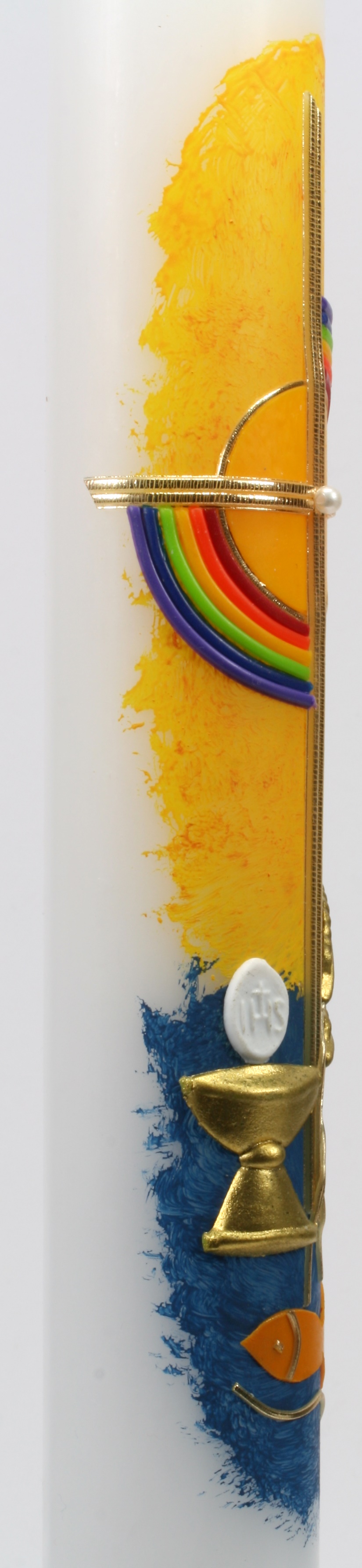Kommunionkerze - Regenbogen, Kelch & Ähren