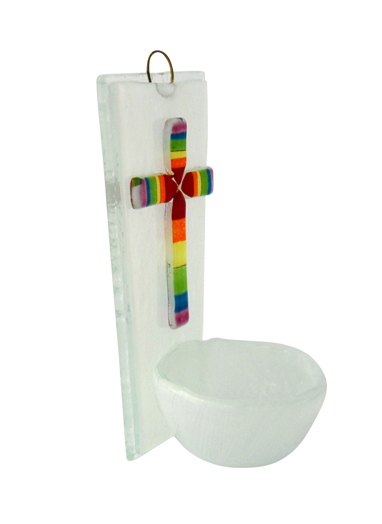 Produktinformationen "Weihwasserbecken - Glas & buntes Kreuz"
