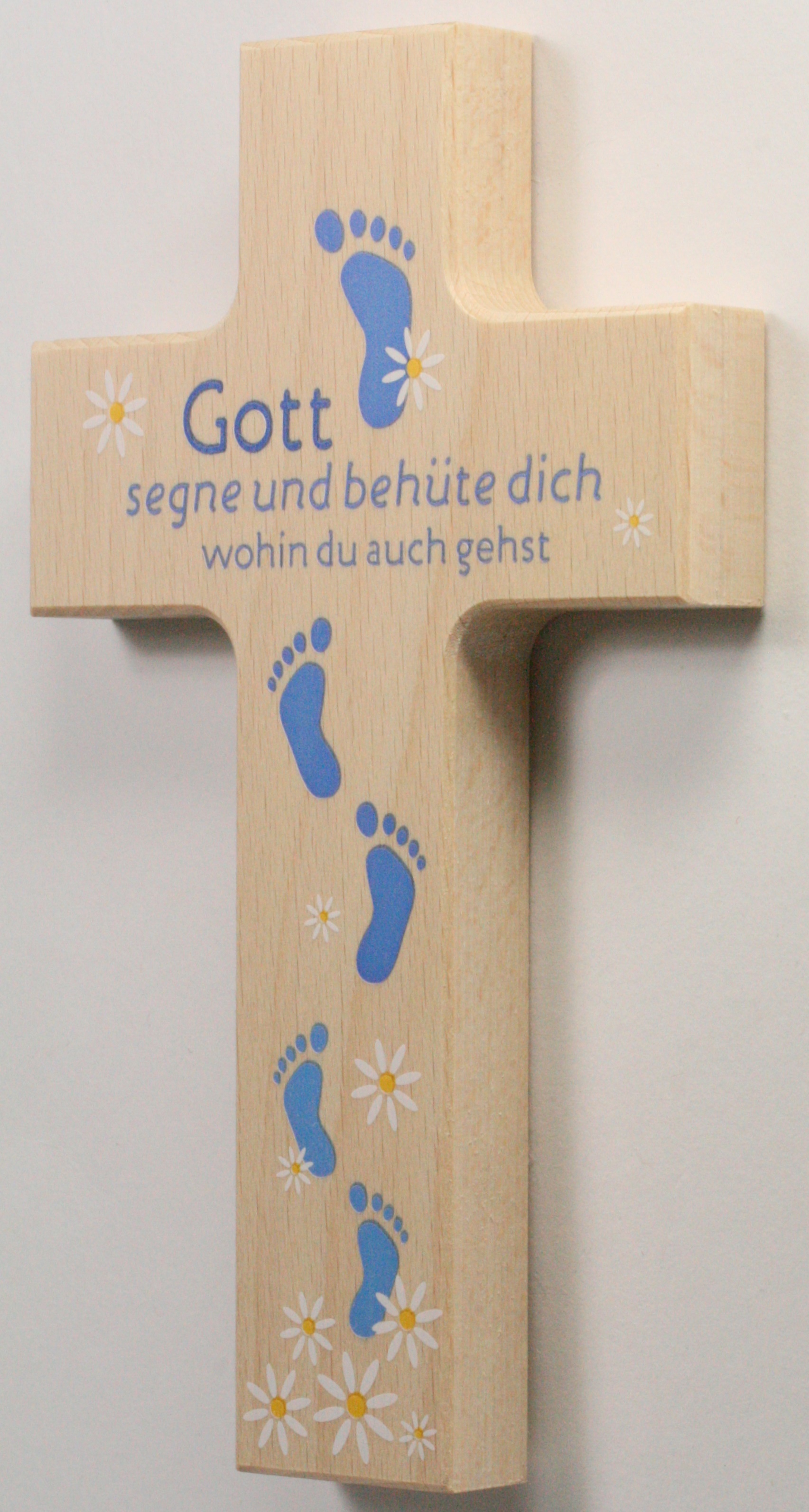 - Text auf dem Kreuz: "Gott segne und behüte dich wohin du auch gehst."