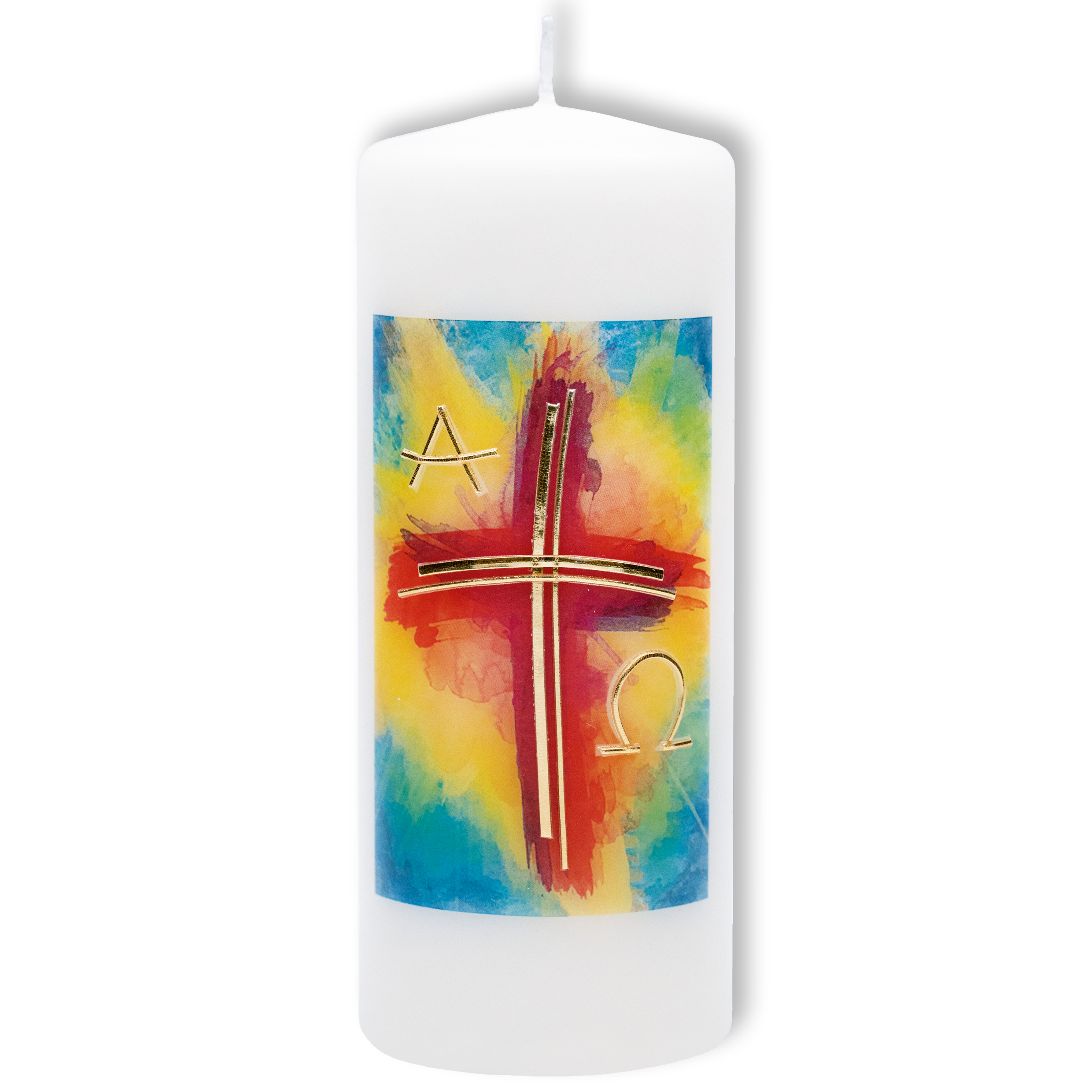 Produktinformationen "Osterkerze - Goldenes Kreuz & Bunt"